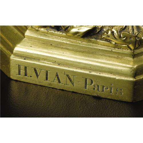 <B>A Pair of French Regence-style Gilt Bronze Five Light Candelabra</B></I><BR><BR>H. Vian, Paris, France<BR>Nineteenth century<BR>Gilt bronze<BR>Marks: signed <I>H. VIAN, Paris</B></I><BR>21.5 inches high<BR><BR>The Regence style five light candelabra with cast baluster stem on square base with canted corners and four scroll supports; scroll arms with pans and bobeche, center pan and bobeche with flame plug.<BR><BR><b>Shipping:</b> Requires 3rd Party Shipping (<a target="_blank" href="http://www.heritageauctions.com/common/shipping.php">view shipping information</a>)