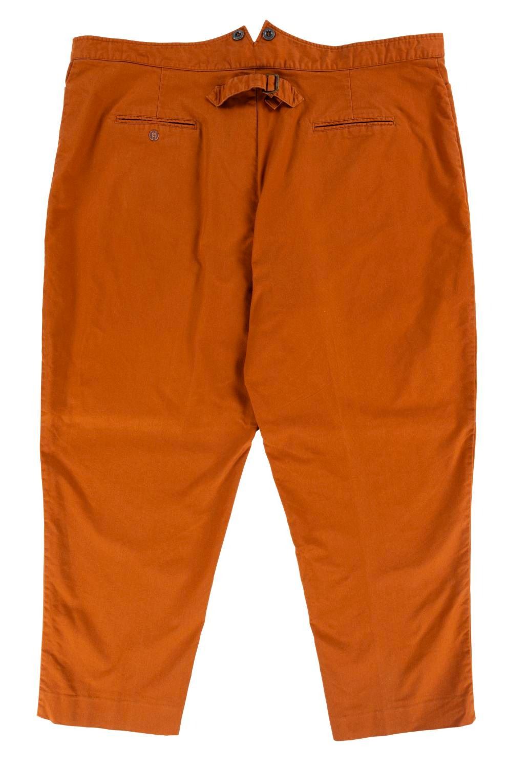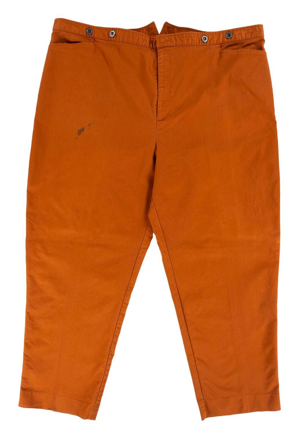 (Walt Disney World, 1990s-2000s) A pair of Frontierland Cast Member uniform pants. Labeled a male size 50x30, the pants are in good condition with a 2.5” stain on the front right thigh and typical pilling and wear from age and Park use.
