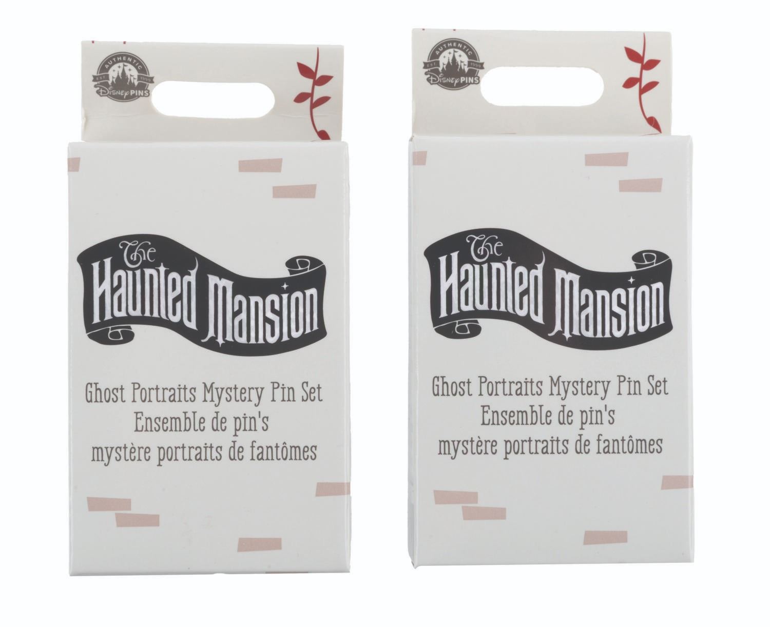 (Disney, 2022) Two unopened blind boxes from the Ghost Portraits Mystery Pin Set, holding a total of four pins from the ten pin series. The boxes and pins are in fine, unopened condition.