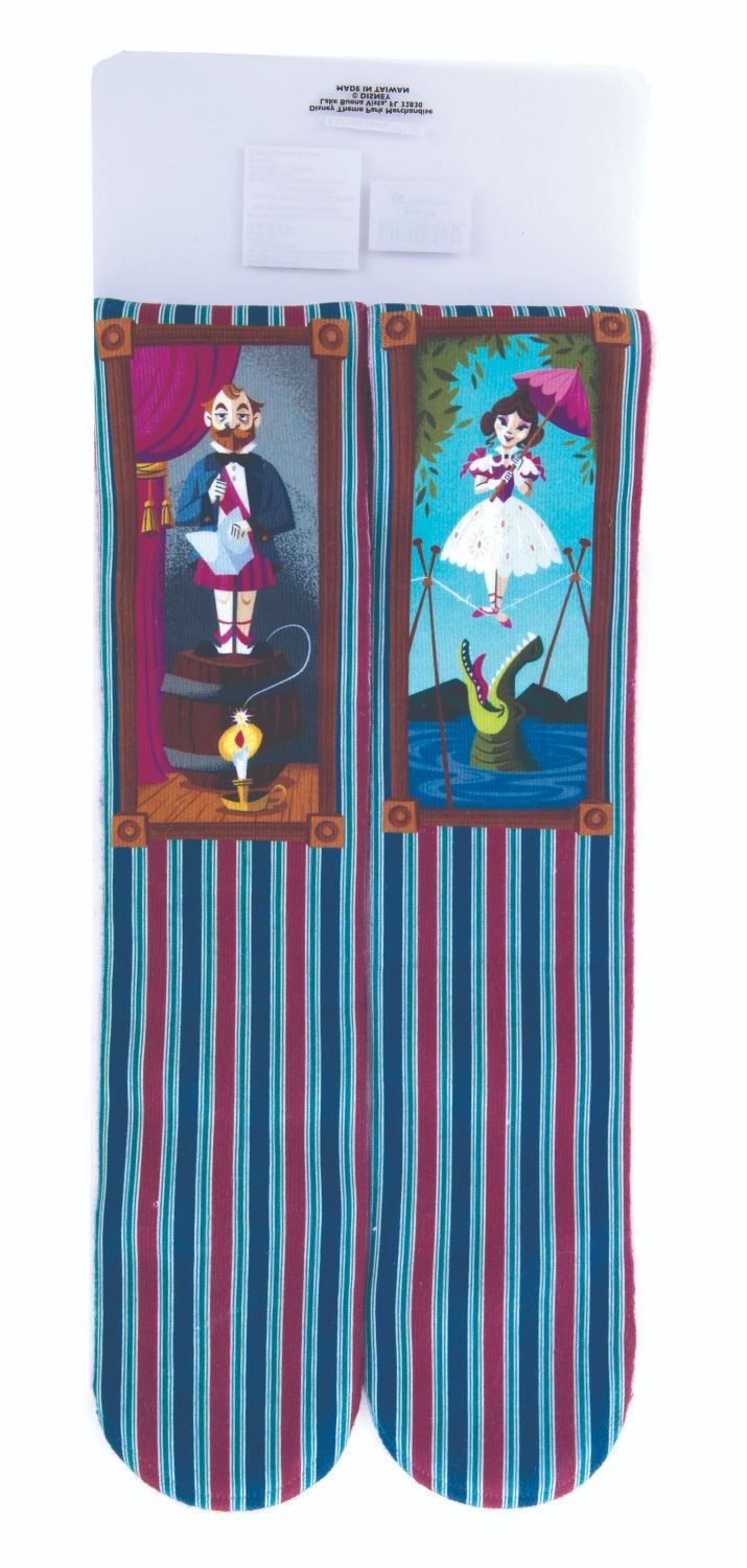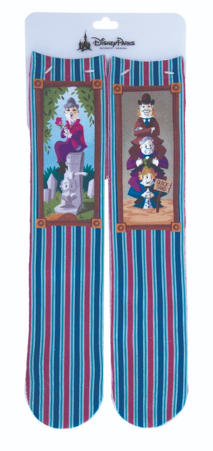 (Disney Parks, 2000s) A pair of socks featuring all four stretching portraits from The Haunted Mansion. Measuring 15” long each, the unused socks are in very good condition with light pilling and wear.