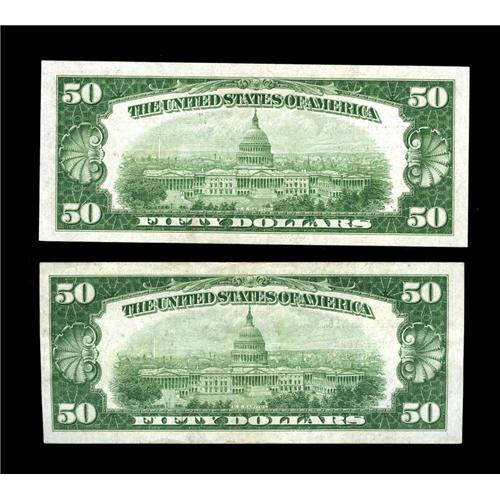 A Pair of High Grade $50 Federal Reserve Bank Notes. A Pair of High Grade $50 Federal Reserve Bank N