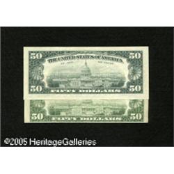 <B>A Pair of Inverted Third Printing $50 Federal Reserve Notes.</B></I><BR>$50 1974 FRN Richmond Choice CU<BR>$50 1985 FRN New York VF.<BR> 2 notes Lot:15127