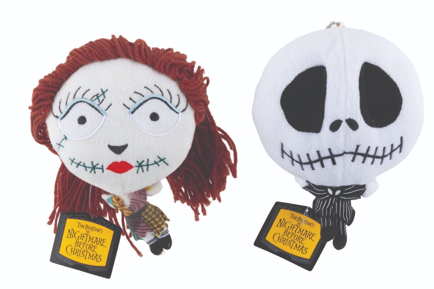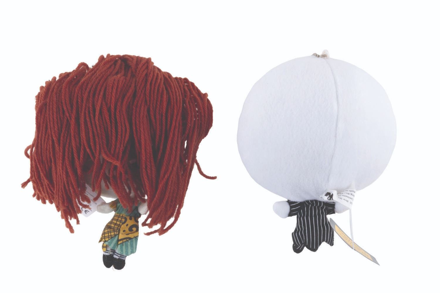 (NECA, 2005) A pair of chibi-style plushes of Jack Skellington and Sally from"The Nightmare Before Christmas," with big heads and tiny bodies. Measuring 7" tall each, the plush dolls are in fine condition.