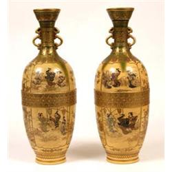 A Pair of Japanese Vases, of ovoid form, with gilt decoration (one a. f.), 39 cm See illustratio...
