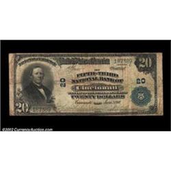 A Pair of Low Charter Cincinnati Notes, Including:Cincinnati, OH- $20 1902 Plain Back Fr. 652 The Fifth-Third NB Ch. # 20 Very Good-FineCincinnati, OH- $10 1902 Plain Back Fr. 624 The First NB Ch. # (M)24 Fine, back soil 2 notes Important notice: We expect to be auctioning lots at the rate of 200-250 per hour. Sometimes eBay Premier live bid software cannot keep up with that pace, so we strongly recommend that you place a realistic proxy bid now as insurance to avoid disappointment. Also please note that all Heritage/CAA lots purchased through eBay Premier carry a 20% Buyer's Premium. Please make sure you read the Terms and Conditions.
