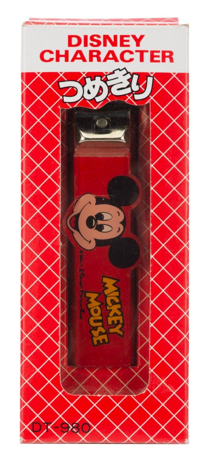 (Lucky Corp., 1980) A pair of Mickey Mouse nail clippers made in Japan and sold at their historic department store, Mitsukoshi. Measuring 2" x 6" in the original box, the clippers are in fine condition with very moderate wear to the box.