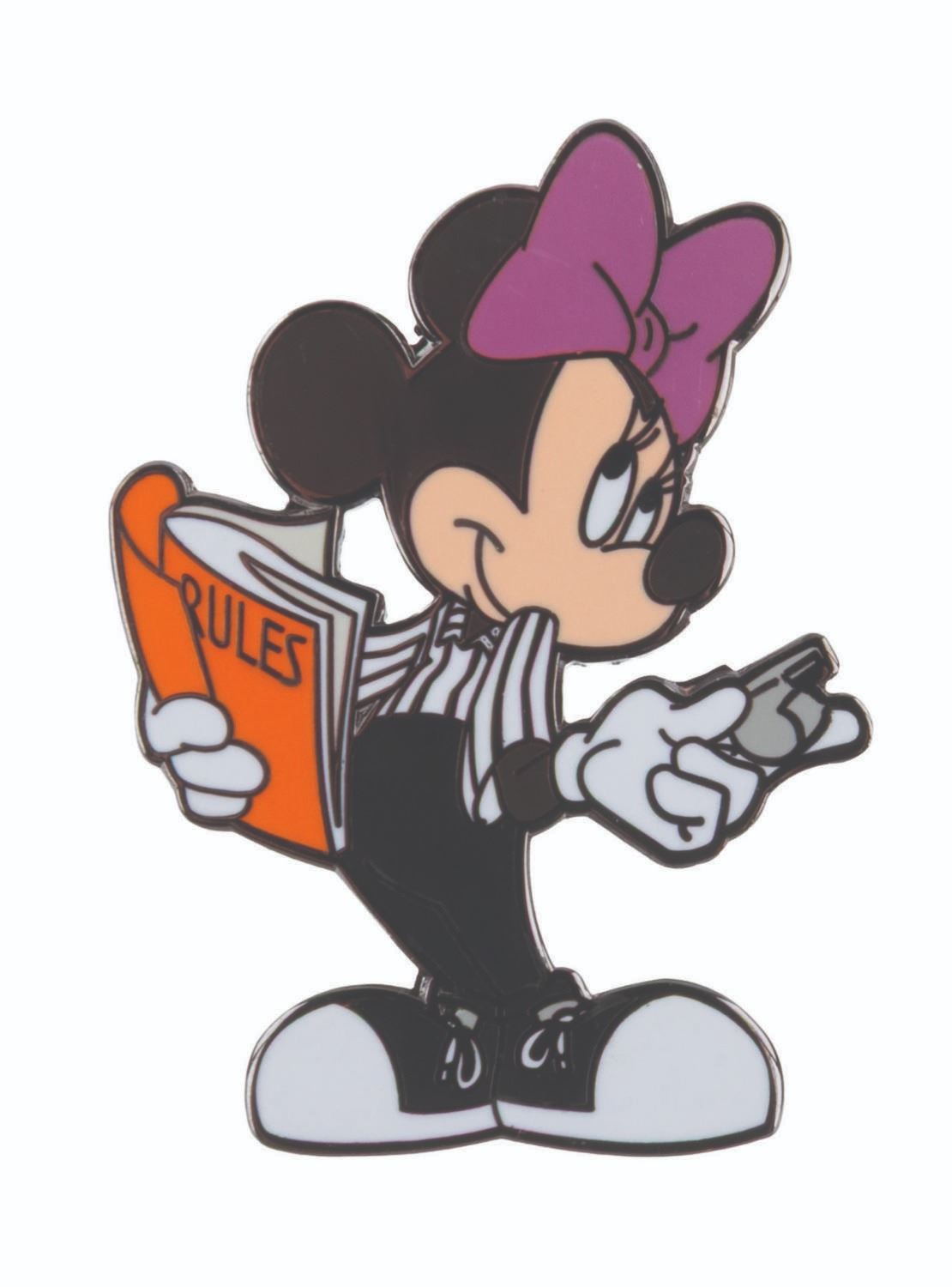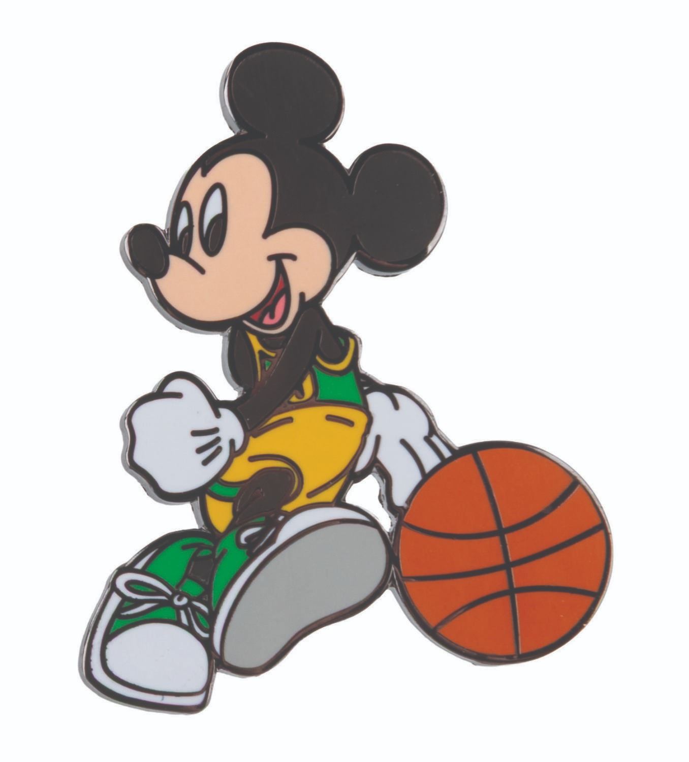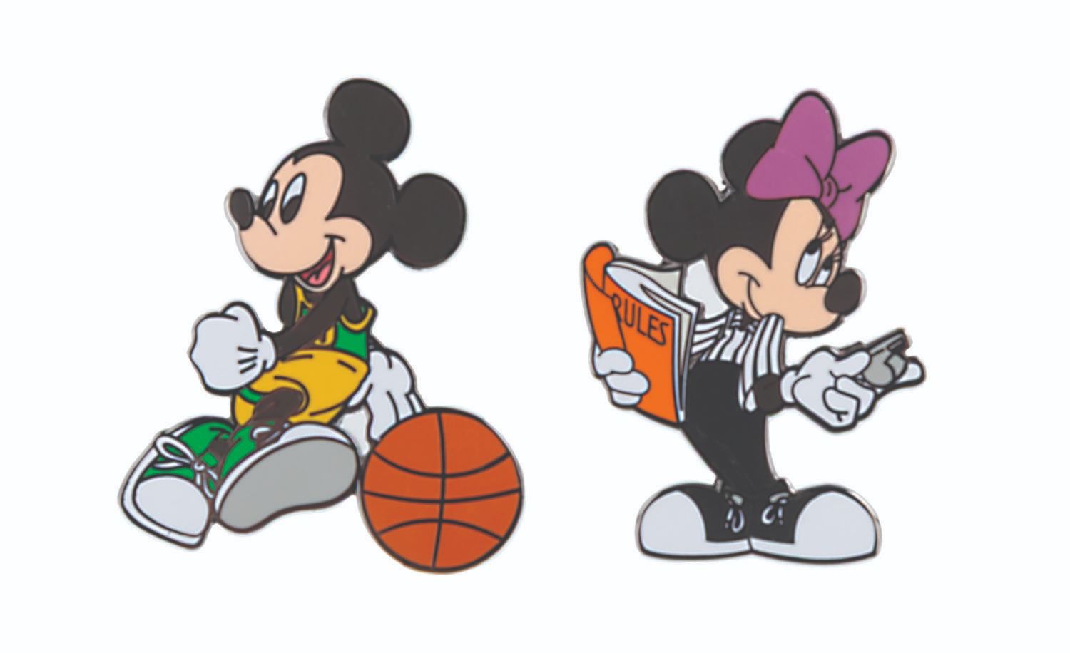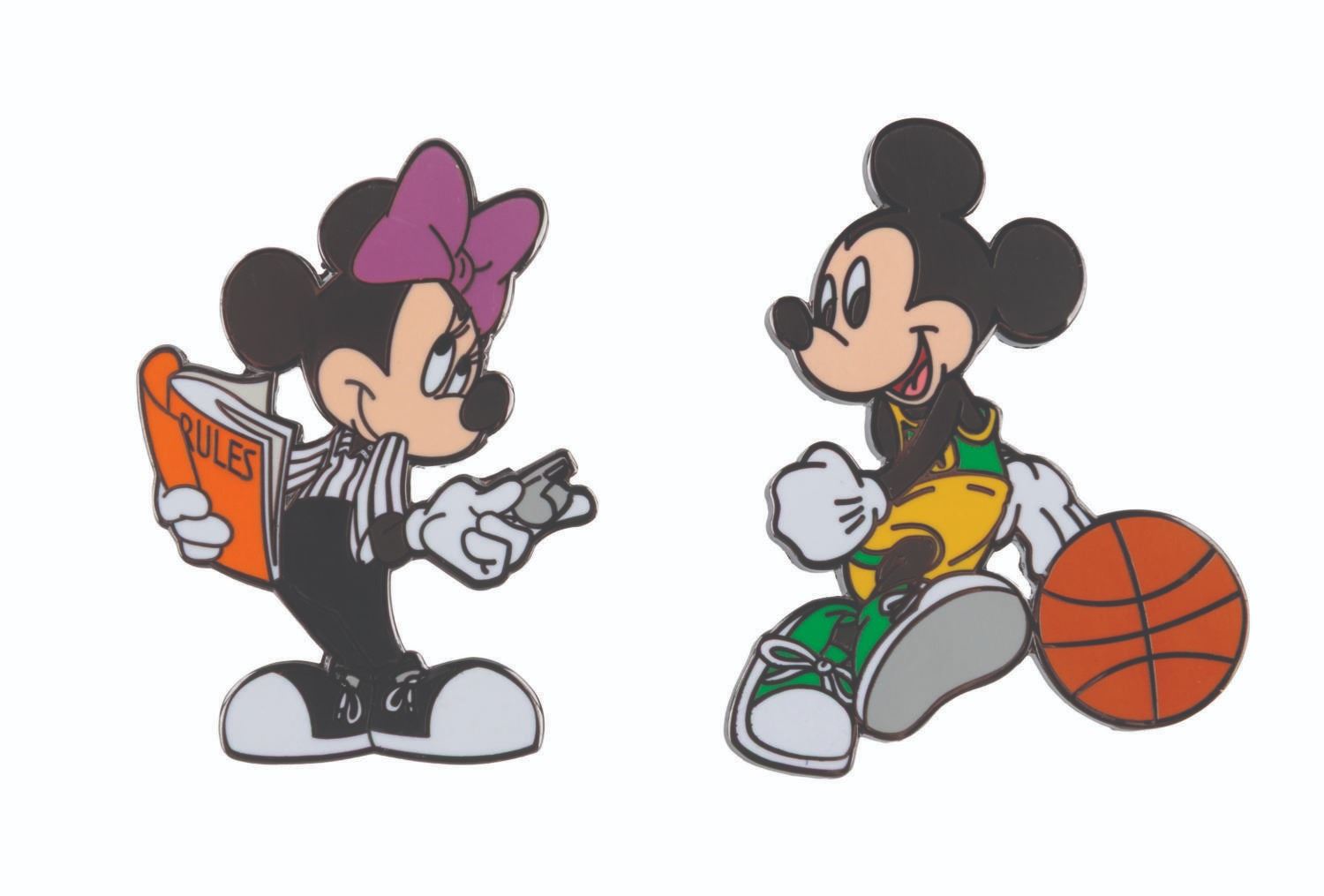 (Disney, 2003) A pair of pins of Mickey playing basketball and Minnie as a referee. These were released exclusively by Disney Catalog in a set with a limited edition of 3000. The pins are in fine condition.