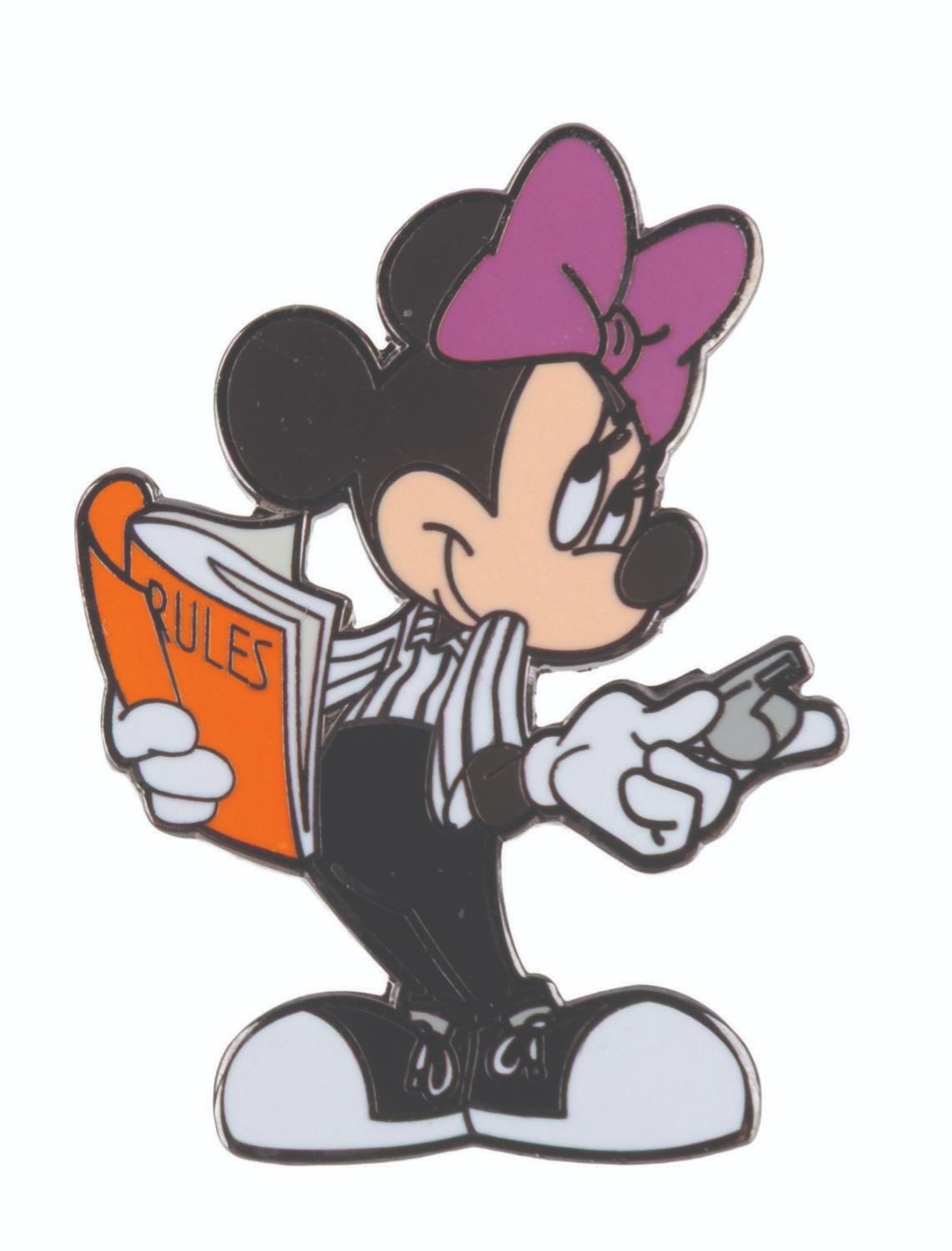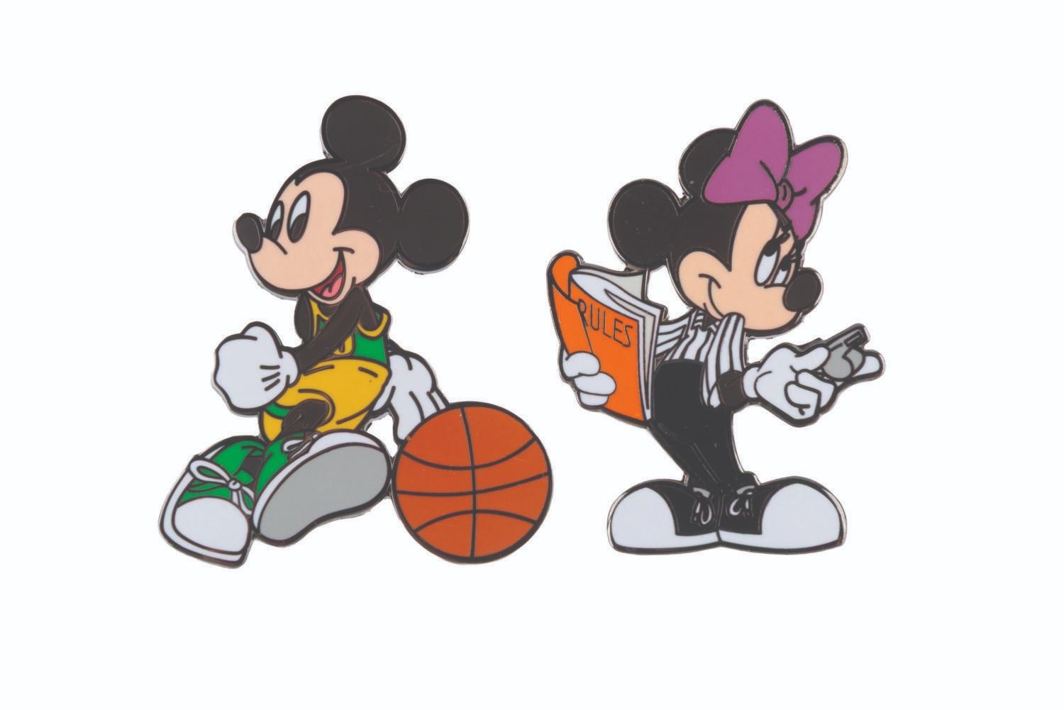 (Disney, 2003) A pair of pins of Mickey playing basketball and Minnie as a referee. These were released exclusively by Disney Catalog in a set with a limited edition of 3000. The pins are in fine condition.
