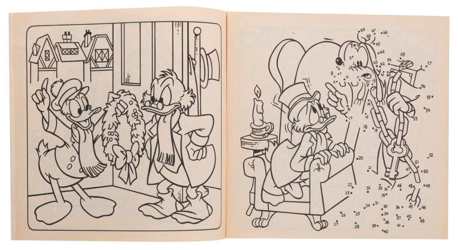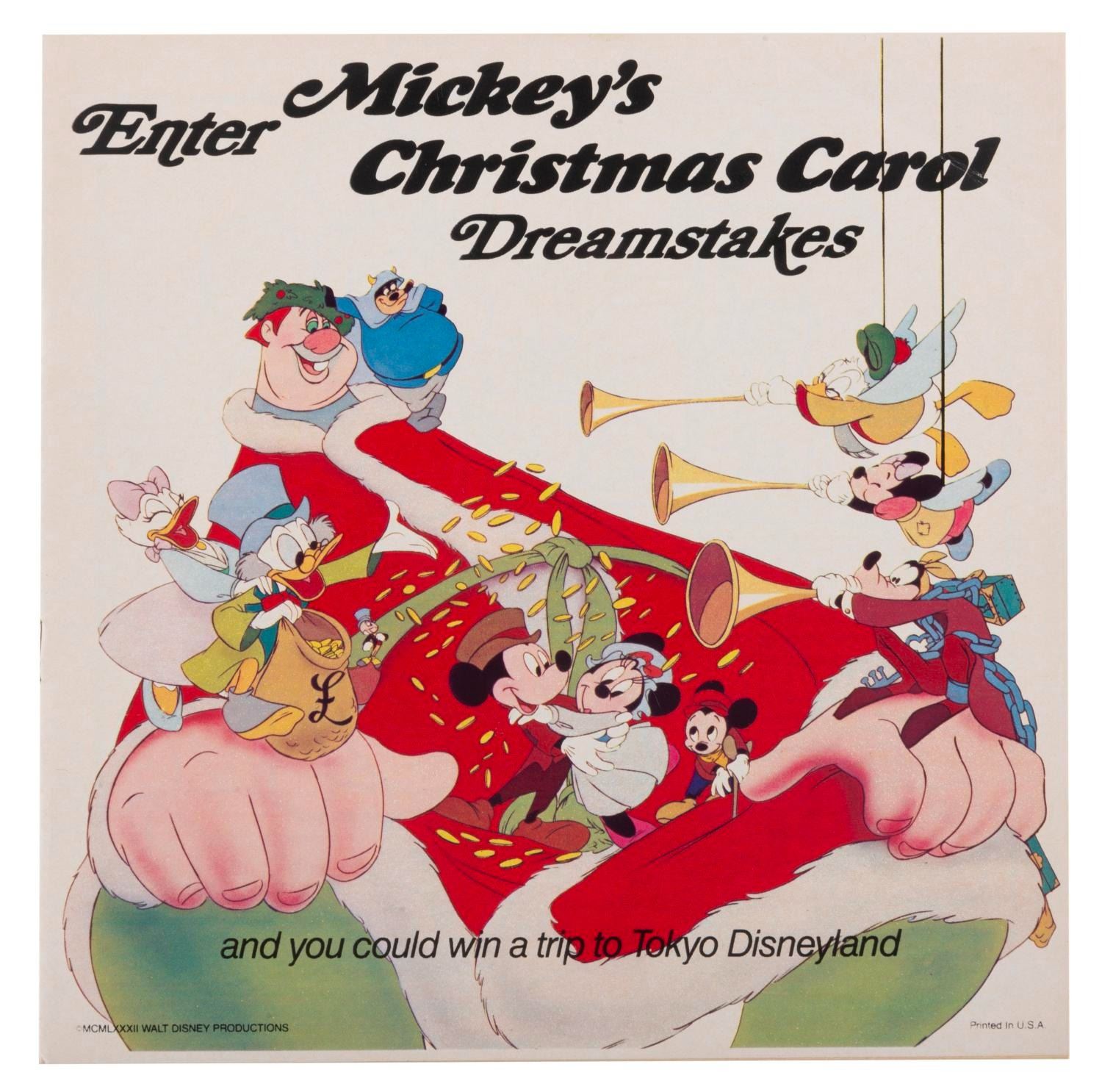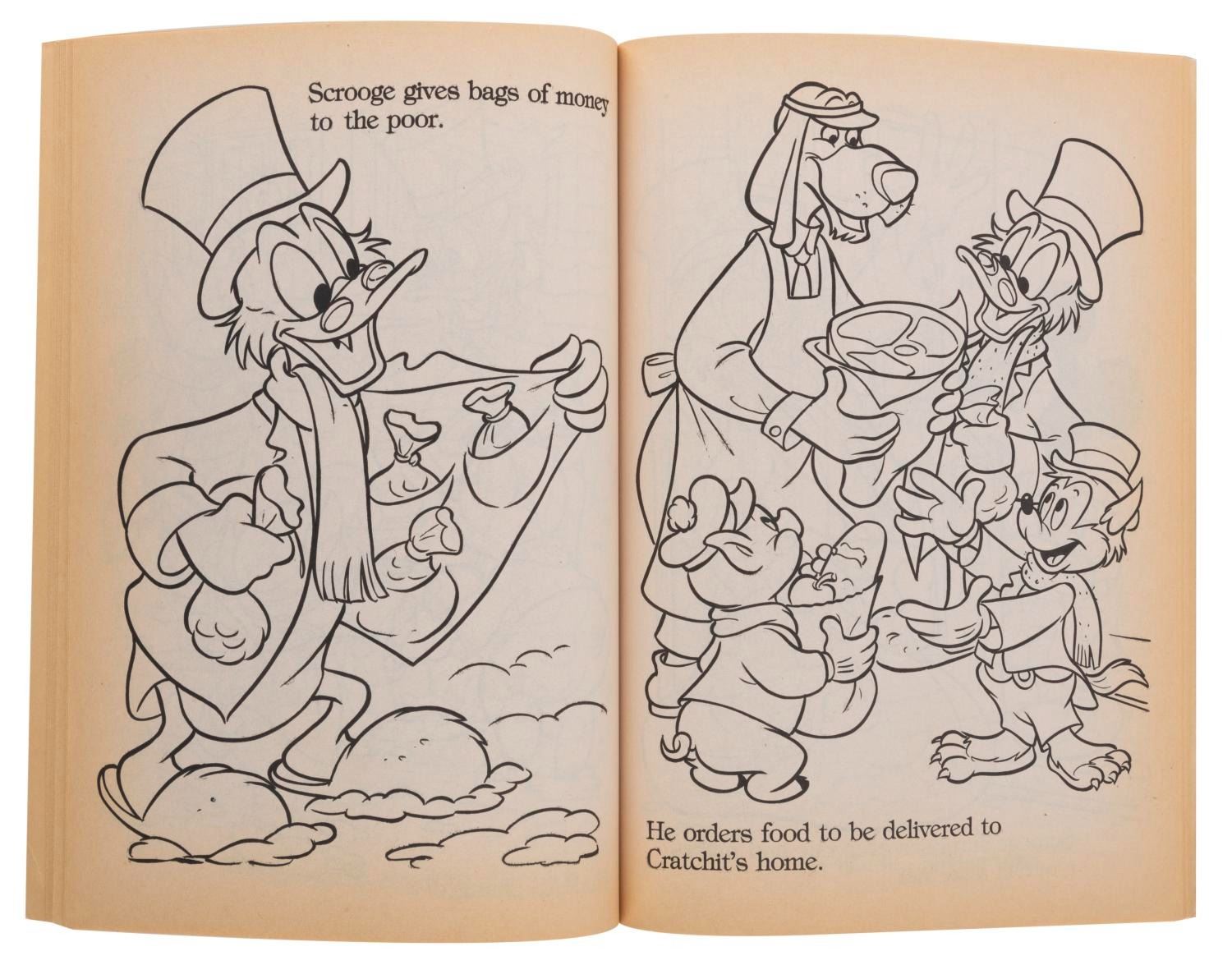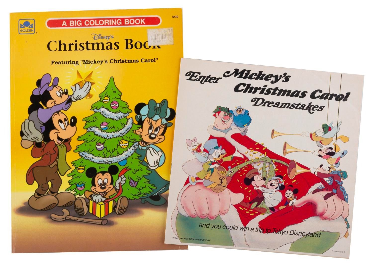 (Disney/Golden, 1982/89) A pair of"Mickey’s Christmas Carol" coloring books including a"dreamstakes" book that offered a grand prize trip to Tokyo Ddisneyland. The coloring books are in very good condition with light handling wear and some discoloration to the pages from age.