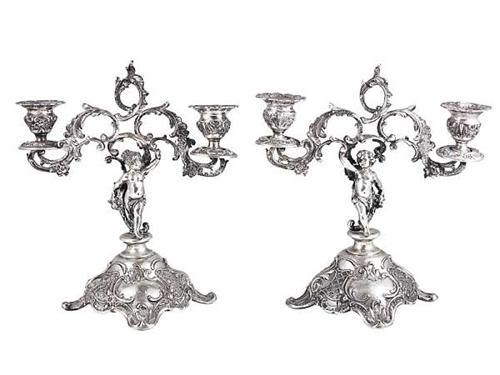 Silver, 1211 g. Cast and pressed. Base raised on four supports, puttis and foliated scroll branches. Marked: Austrian, circa 1880, Franz Rumwolf senior. Neuwirth: II/167. Size: 25 cm