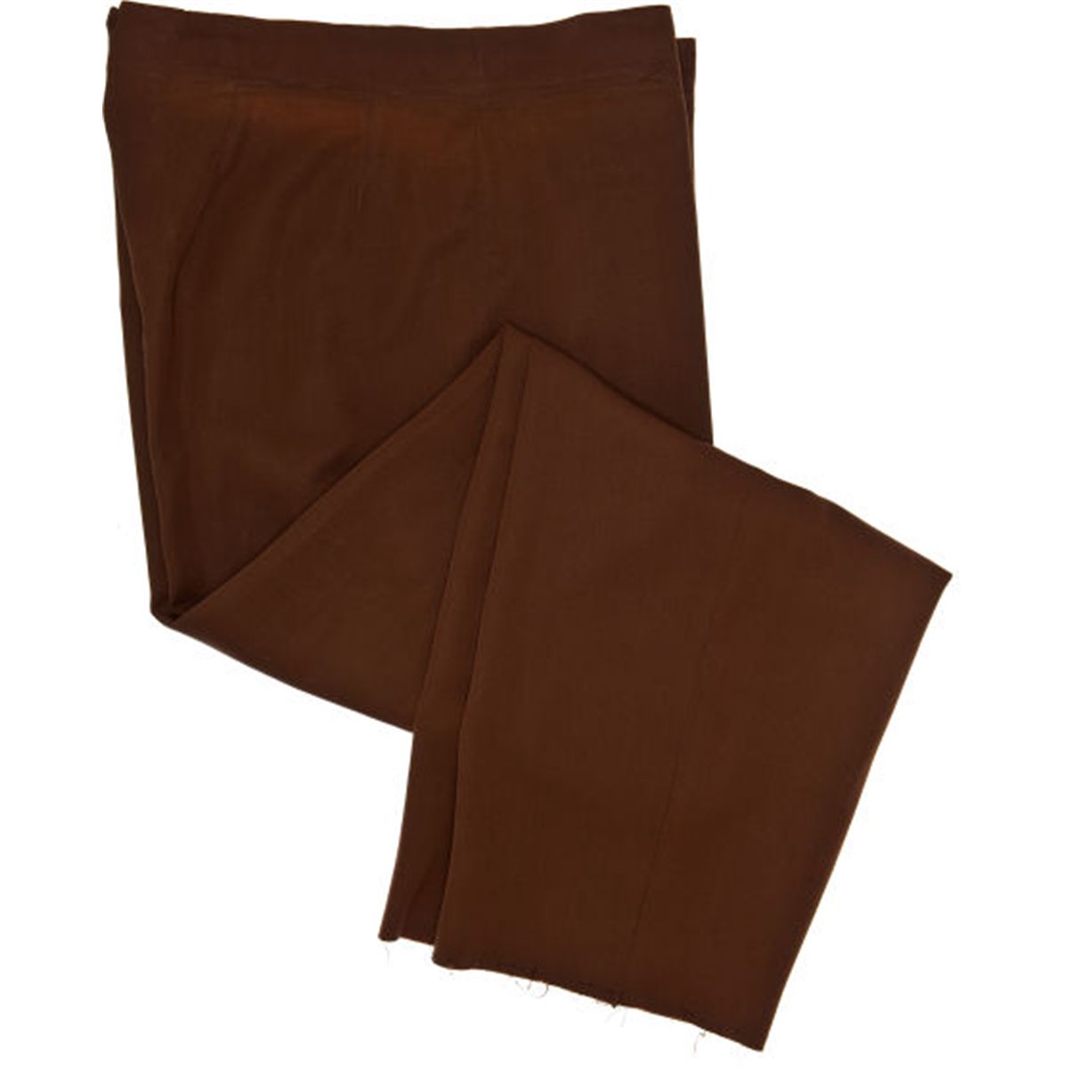 A Pair of Pants from "The Conqueror." RKO Radio Pictures, 1956. Made of brown rayon, flat front, no pockets, Western Costume Co. label reads "No. 73-2378-3 / John Wayne / Ch #3 / Waist 36 / Inseam 33 1/2," further WCC stamp on inside waist band; worn as Wayne portrayed "Genghis Khan" in the film that co-starred Susan Hayward and Agnes Moorehead.