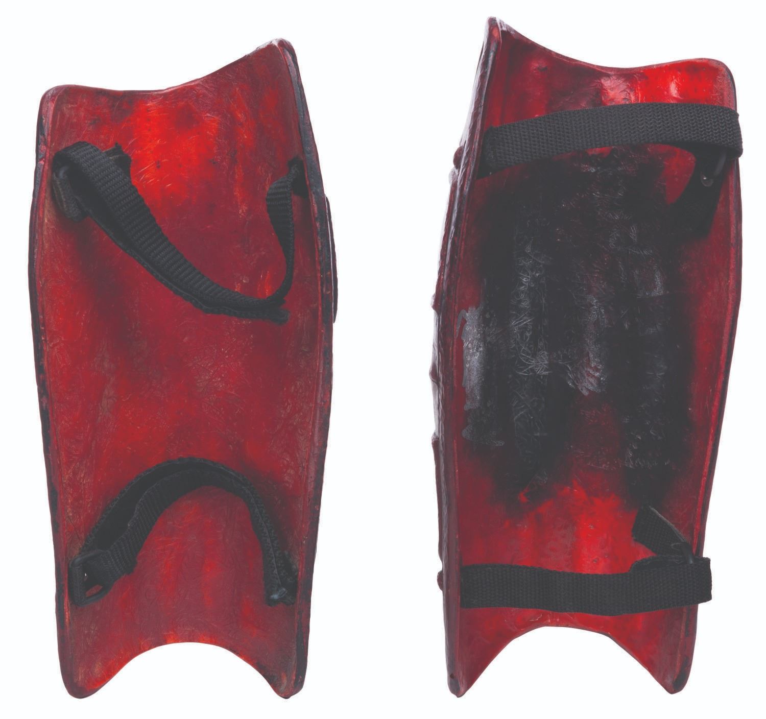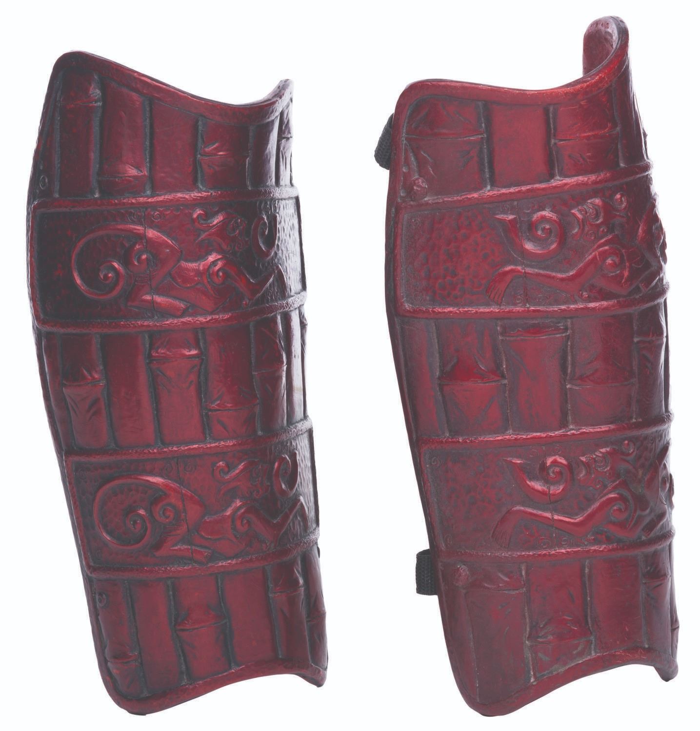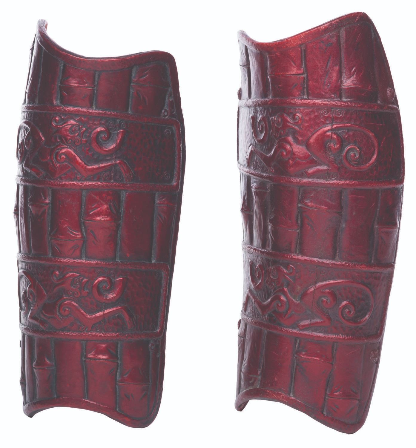 (20th Century Fox, 2001) A pair of chimp warrior ornate armor plates from Tim Burton’s “Planet of the Apes.” These were worn in the finale battle scene and have the name of stunt performer David Anthony written inside. Each measuring 5.5” x 12”, the fiberglass plates with Velcro straps are in very good production-used condition.