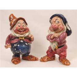 A Pair of Pottery Dwarves, from Snow White, Grincheux (Grumpy) and Joyeux (Happy), (some damage) 58 & 57 cm See illustration £100 - 150