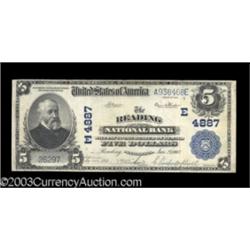 <TABLE cellSpacing=0 cellPadding=0 width="100%" bgColor=#000000 border=0><TBODY> <TR><TD width="100%"><TABLE cellSpacing=1 cellPadding=3 width="100%" border=0><TBODY><TR><TD width="100%" bgColor=#79735c><FONT face=arial color=#ffffff size=3><B>Description</B> </FONT></TD></TR><TR><TD width="100%" bgColor=#ffffff><FONT face=arial size=2><B>A Pair of Reading, Pennsylvania Napier-Thompson Third Charters</B></I><BR><B>Reading, PA -</B></I> $5 1902 Plain Back Fr. 603 <B>Reading NB</B></I> Ch. # (E) 4887<B> VF</B></I><BR><B>Reading, PA - </B></I>$20 1902 Plain Back Fr. 655 <B>Reading NB</B></I> Ch. # (E) 4887 <B>VF.</B></I> (300-500 ) (2 notes) </FONT></TD></TR></TBODY></TABLE></TD></TR></TBODY></TABLE><BR><TABLE cellSpacing=0 cellPadding=0 width="100%" bgColor=#000000 border=0><TBODY><TR> 2 notes Important notice: Heritage usually auctions material at the rate of 200-250 lots per hour. On some occasions eBay Live bid software or the Internet may not be able to keep up with the pace of the auction. We recommend placing a realistic absentee bid now as insurance to avoid disappointment. Occasionally the auctioneer may eliminate or reject an eBay Live bid, and the auctioneer may also reopen a lot after the close of the eBay live bidding (usually because we missed an audience bid), and may reject your bid even if it shows you as the winning bidder. By bidding via eBay Live, you agree that Heritage may award the lot to another bidder at its sole discretion under the circumstances described above or any other reasonable circumstances. Also please note that all Heritage lots purchased through eBay Live carry a 20% Buyer's Premium. Please make sure you read the Terms and Conditions before you bid.</TR></TBODY></TABLE>