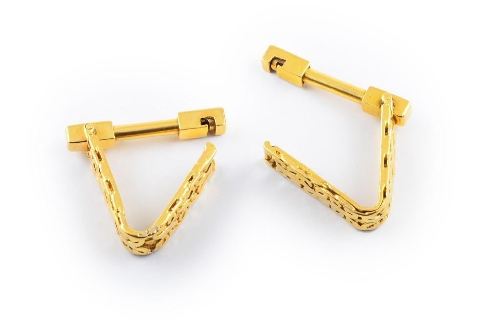 Bulgari 18K gold triangular cufflinks. Signed Bvlgari. Length approx 1 inches, width 1/4 inches, weight 12.3g.