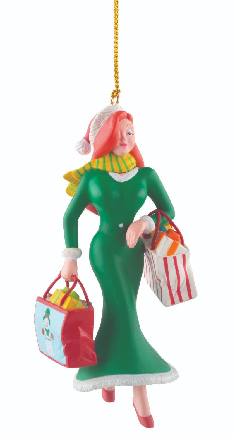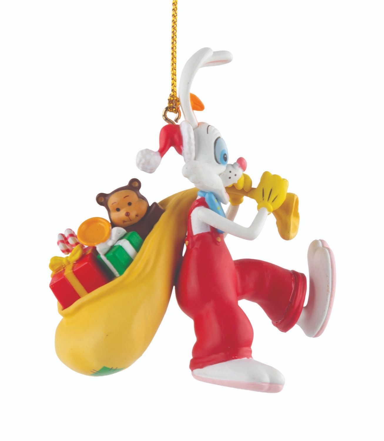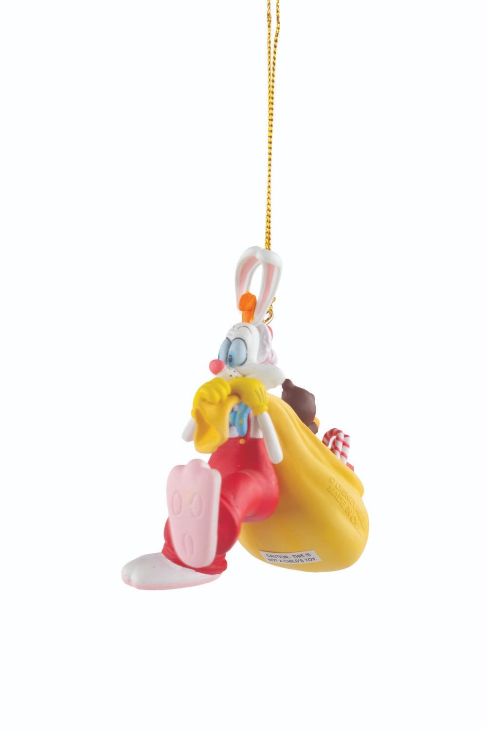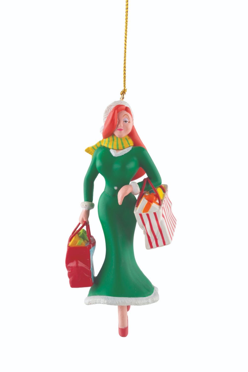 (Grolier, 1990s) A pair of Christmas ornaments featuring Roger and Jessica Rabbit holiday shopping. Measuring 3" x 3" to 2" x 4.25", the ornaments are in fine condition with their original boxes.