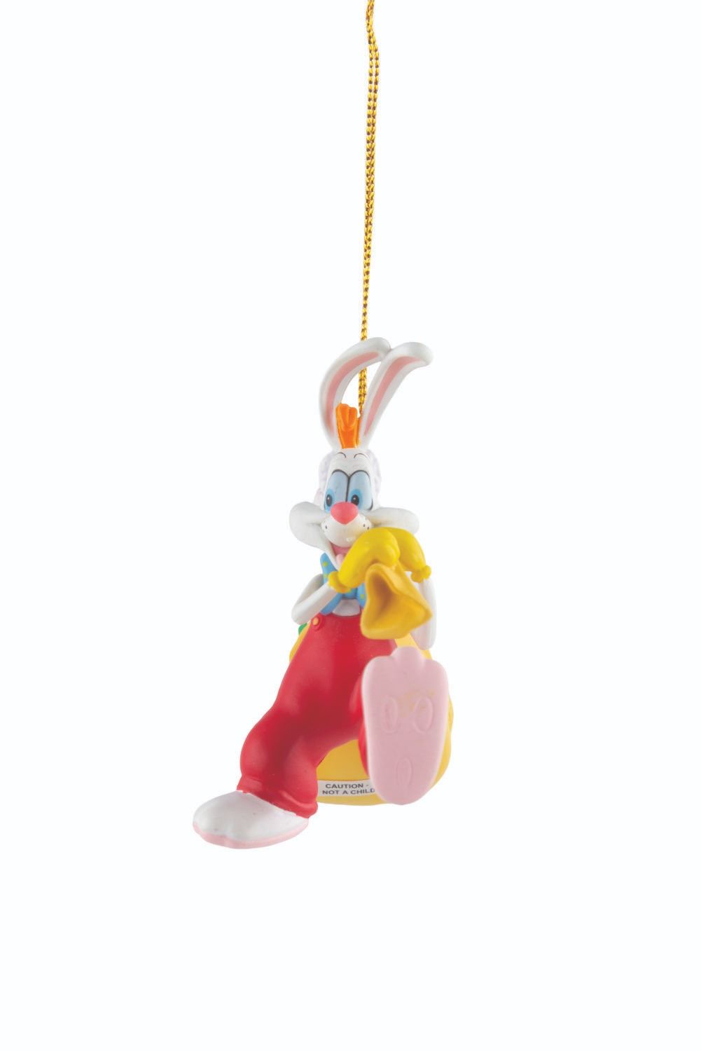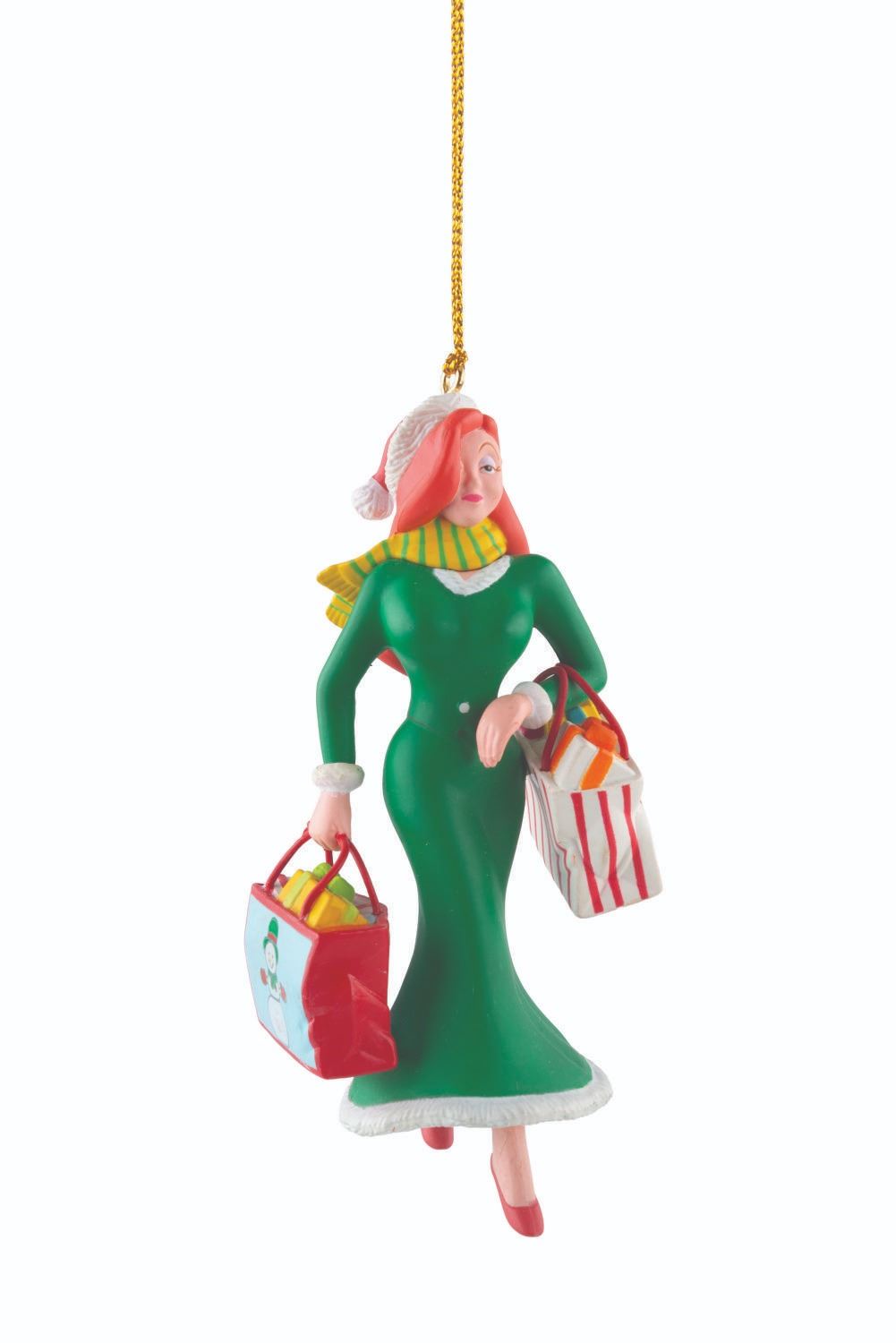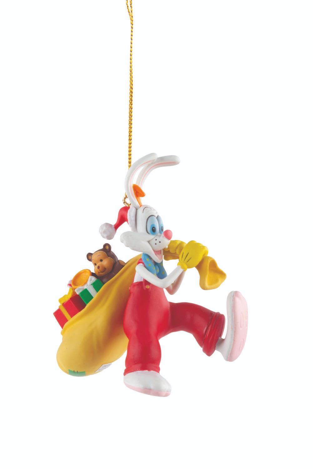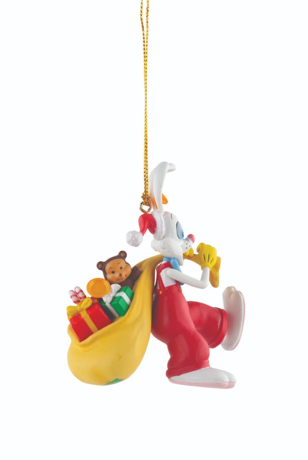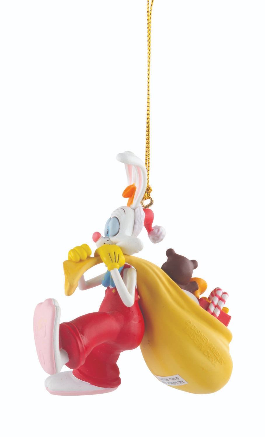 (Grolier, 1990s) A pair of Christmas ornaments featuring Roger and Jessica Rabbit holiday shopping. Measuring 3" x 3" to 2" x 4.25", the ornaments are in fine condition with their original boxes.