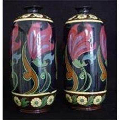 A Pair of Shelley Foley Intarsio Vases c1920s Designed By Fred Rhead