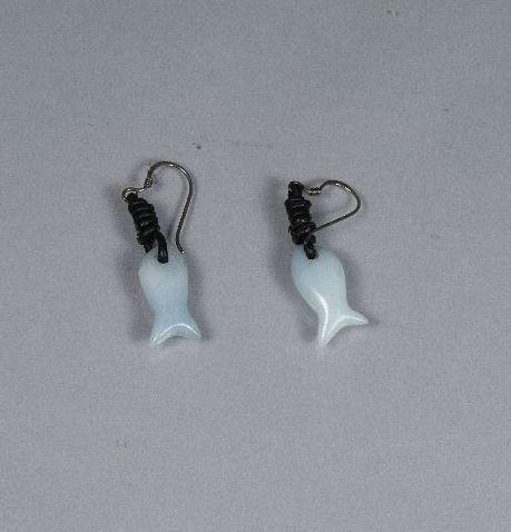 A Pair of Sterling Silver Jade Fish Form Earrings,