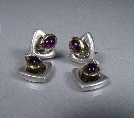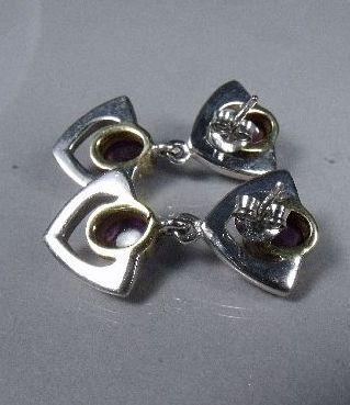 A Pair of Sterling Silver and Gold Vermeil Amethyst Drop Earrings,