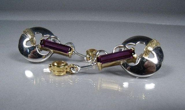 A Pair of Sterling Silver and Gold Vermeil Amethyst and Citrine Drop Earrings,