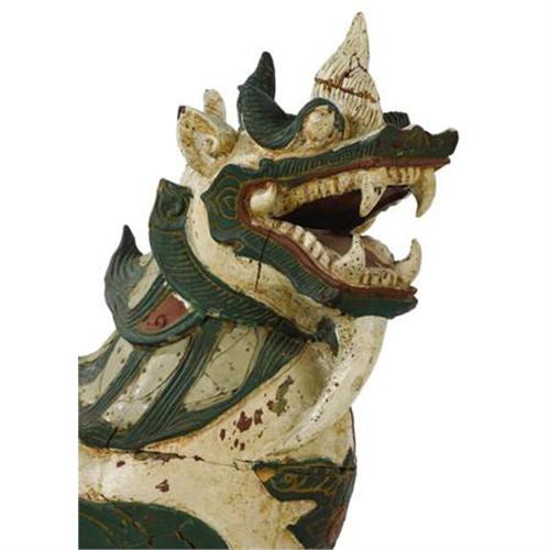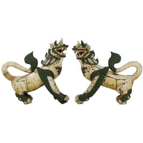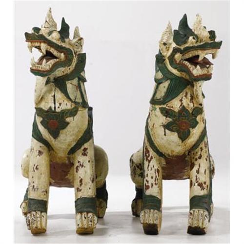 <B>A Pair of Thai Carved Temple Dogs<BR></B></I>Unknown maker, Thailand<BR>Nineteenth Century<BR>The hand-carved temple dogs with a polychrome finish<BR>Unmarked<BR>34 inches high<BR><BR><b>Shipping:</b> Requires 3rd Party Shipping (<a target="_blank" href="http://www.heritageauctions.com/common/shipping.php">view shipping information</a>)