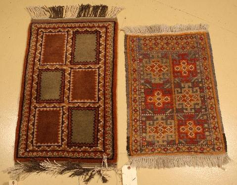 A Pair of Two Persian Turkoman Wool Rugs. 1 ft 4 in x 2 ft each