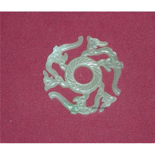 For the ancient Chinese couple, they exchanged something with each other as a memory of their love. This pair of round jade stone pendants is a good option for a couple as a gift to each other to hold one for life. Sometimes, you don't need an expensive diamond to show your love or to demonstrate the image of your love. A meaningful and special item is enough. This pair of pendants has some beautiful carving on a light green color jade stone.