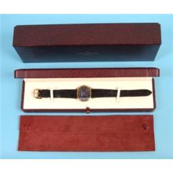 A Patek Philippe 18ct Yellow Gold Wristwatch, with a blue dial, on a Patek Philippe leather strap and Patek Philippe yellow gold strap buckle, in original case and outer box See illustration £2400 - 2800