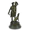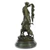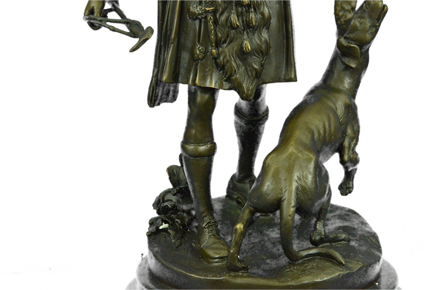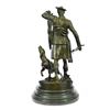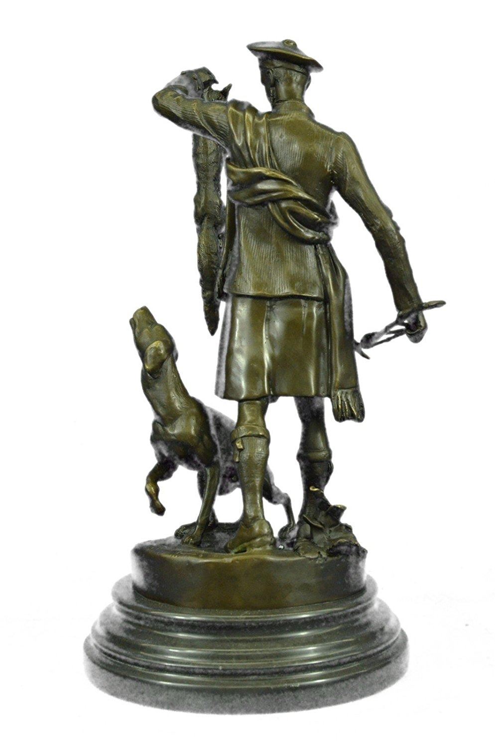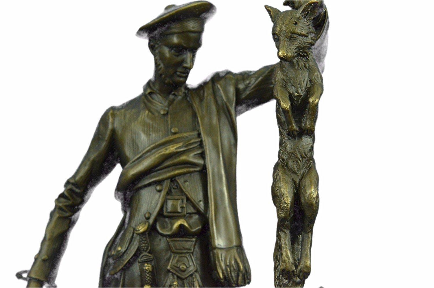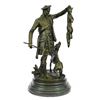 For centuries the thrill of the fox hunt was the ultimate European gentleman's pastime. Scottish Hunter With Fox Sculpture by Pierre Jules Mene captures the victorious final moments of the hunt when the sly fox if finally captured and the came comes to a close. Whether you're of European descent or just enjoy the thrill of the hunt, this tabletop sculpture will bring you back to earlier times.Our bronze statues are extremely popular and proudly displayed in gardens, parks, homes, schools, cities, and fine galleries.The handmade bronze sculpture was cast using the early method of lostwax casting and stained with a brown patina finish for conservation. It is mounted upon a black marble base. Bronze Dimensions with Marble Base: Height 15 X Width 8 inches. Weight: 20 LBS. Inventory: 45EP79610554