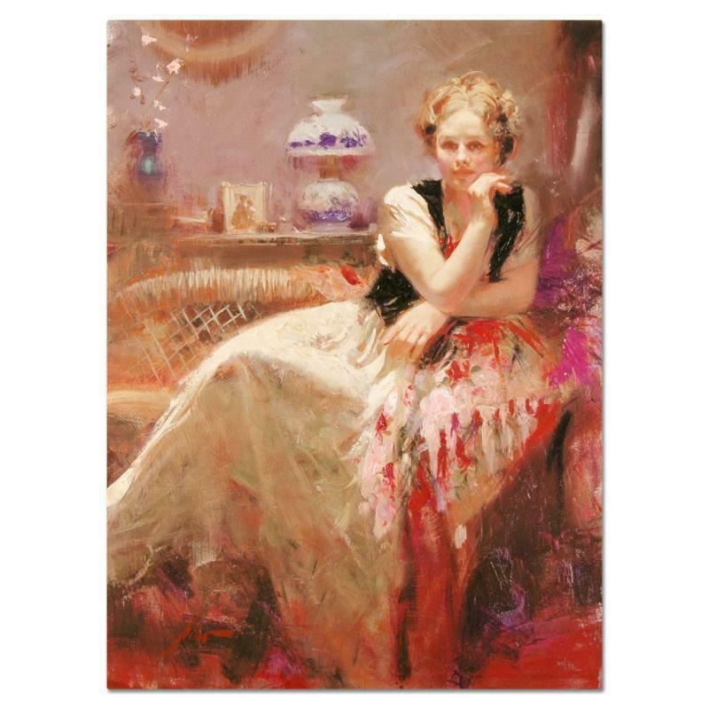 "A Pause" is a hand embellished limited edition giclee on canvas by Pino (1939-2010), numbered and hand signed. Includes Certificate of Authenticity. Measures approx. 26" x 36" (image). This piece is not stretched.