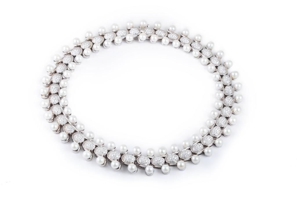 A Pearl Diamond Bracelet and Necklace Set, by David Morris