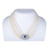 A Pearl Necklace with Sapphire and Diamond Clasp, by Seaman Schepps