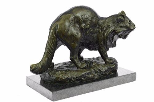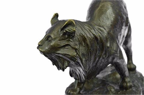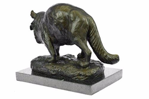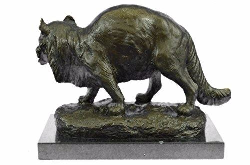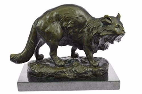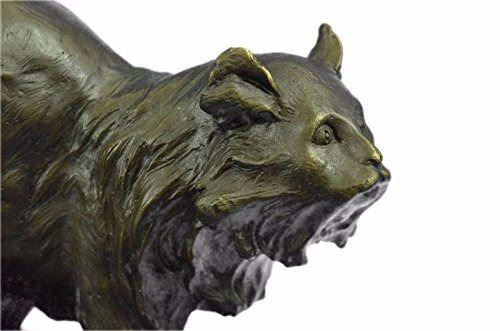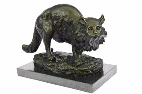The Friendly Cat Sits Outside In The Twilight Of The Night After Taking A Long Cat Nap. It Sits With Its Tail Wrapped Up Around Its Back Legs As It Looks Back At Its Owner That Calls It In For A Tuna Dinner. Cats Stand For Deep Understanding In This Natural World, As If A Physic Mind Was In Them. The Symbolic Significance Of Cats Has Is An Ancient History. Some Meanings Are Astuteness, Clever, Mysterious, Intelligence, Intuition, Supernatural, And Independence. Often, When A Cat Makes An Uncommon Appearance In Our Lives, It Is A Message For Us To Shake Up Our Habitual Routines And Make Some Fresh Changes In Our Lives. The Bronze Sculpture Was Molded Using The Ancient Method Of Lost Wax Casting And Stained With A Brown Patina Finish For Preservation and It Is Mounted Upon A Black Marble Base. Bronze dimensions with marble base: Height 7 X Width 10 inches. Weight: 9 lbs.Please Note: This is a reproduction bronze sculpture from the original molded and signed. This featured bronze sculpture is a recast after the original, and has been done recently. This 100% bronze sculpture is an abstract piece certain to be a conversation piece.Please Note: This is a reproduction bronze sculpture from the original molded and signed. This featured bronze sculpture is a recast after the original, and has been done recently. This 100% bronze sculpture is an abstract piece certain to be a conversation piece.