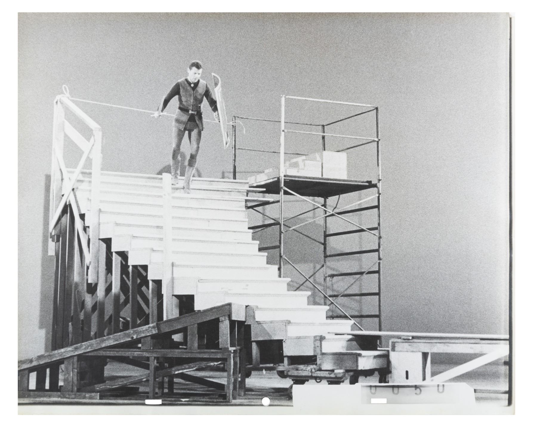 (Disney, 1950s) An original photostat print from the Disney Studios animated classic “Sleeping Beauty.” The print features an actor portraying Prince Phillip in his epic battle with Maleficent, and was created at the studio and used during production to assist animators with drawing realistic movements. Measuring 12.5” x 15.5”, the print is in very good condition with light edge wear.