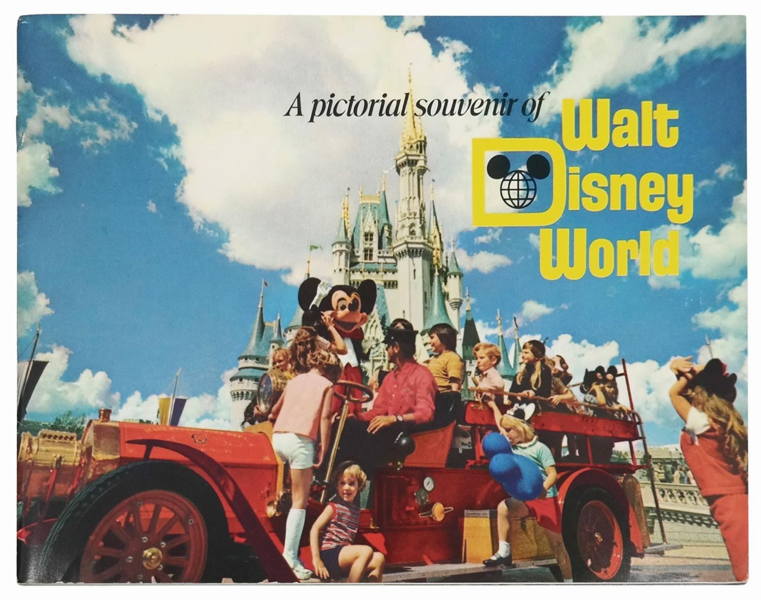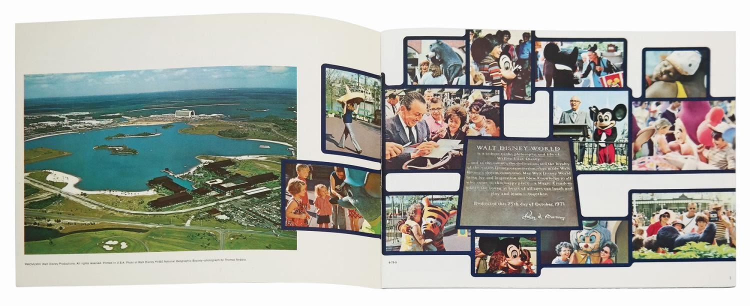 (Walt Disney World, 1975) A pictorial souvenir guidebook featuring the many lands and resort hotels of Walt Disney World in 1975. The 36-page guidebook measures 8.75" x 11.5" and is in very good condition with very light edge wear and slight creasing along the spine, consistent with age and use.
