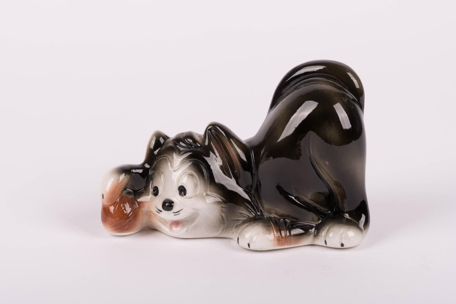 (Disney, 1940s) A ceramic figurine of Figaro from "Pinocchio" produced in Spain and marked "Figaro" on the back. Measuring 6" x 2.75" x 4" tall, the figurine is in very good condition.