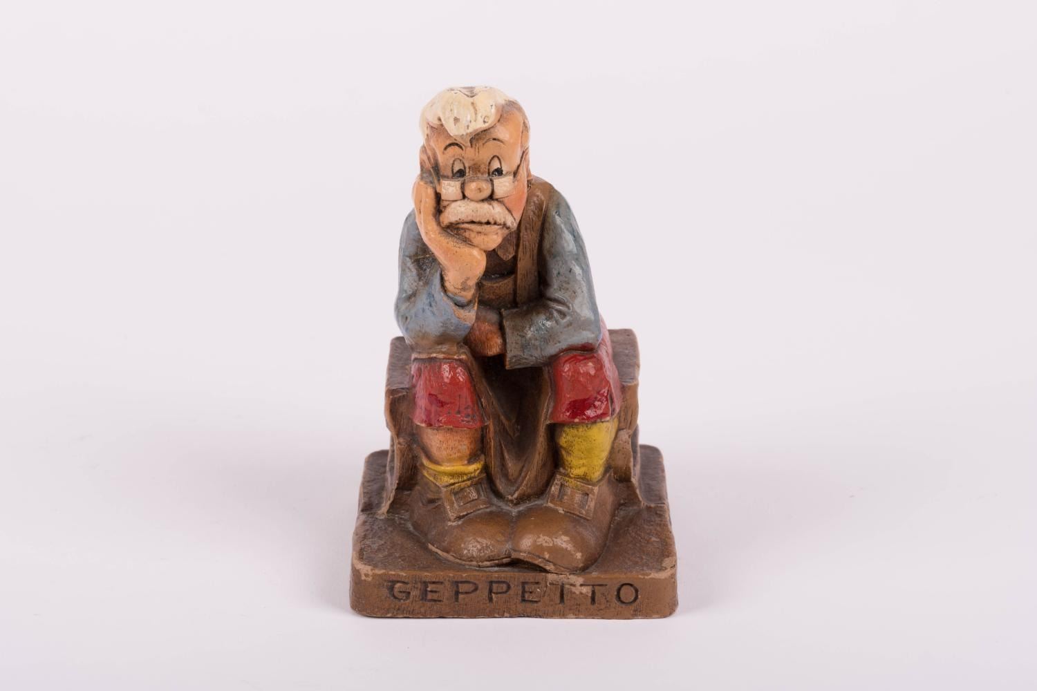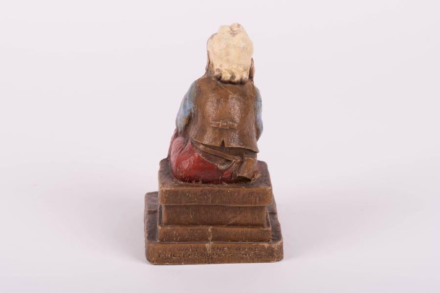 (Multi Products, 1940s) A wood-composition figurine of Geppetto from “Pinocchio” manufactured by the Chicago-based Multi Products. Measuring 3” x 3.25” x 5” tall, the figurine is in very good condition with light cracks, wear, and paint loss.