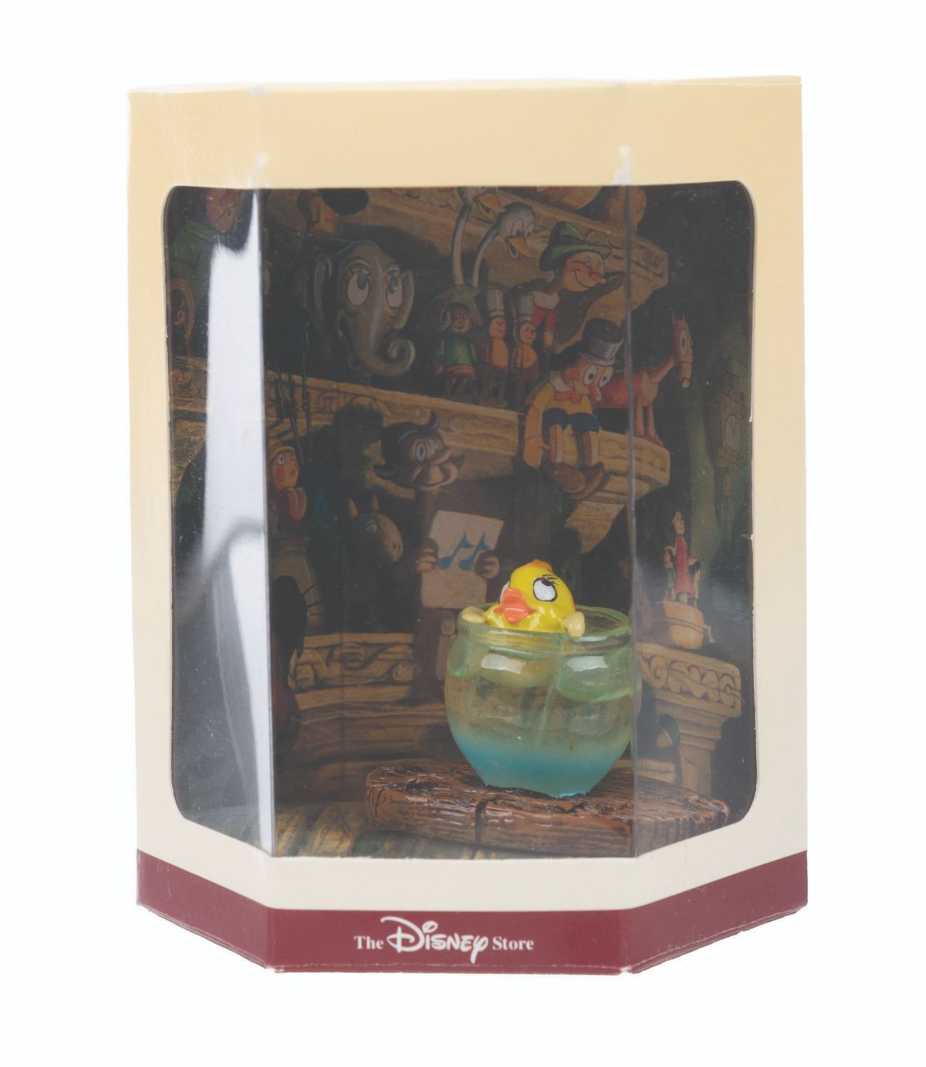 (Disney Store, 1990s) A collection of five “Pinocchio” Tiny Kingdom figurines in their original boxes, including Pinocchio, Cleo, Jiminy Cricket, Figaro, and the Blue Fairy. Measuring 3” x 3” x 3.5” in the box, the figures are in fine condition.