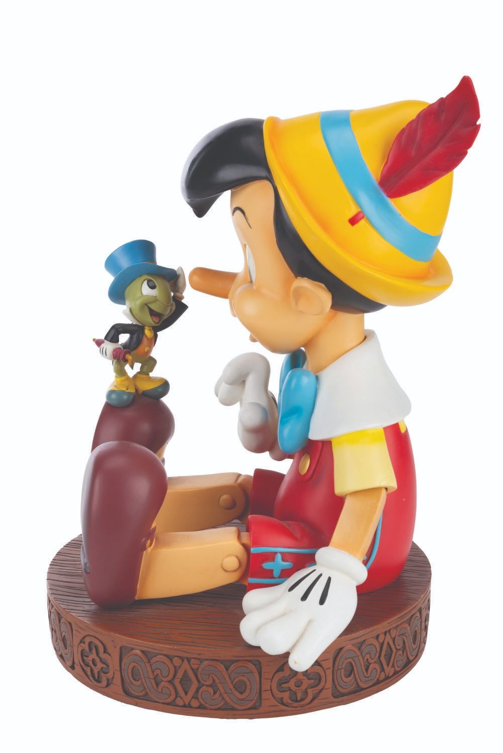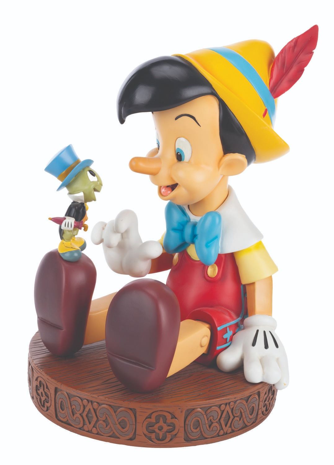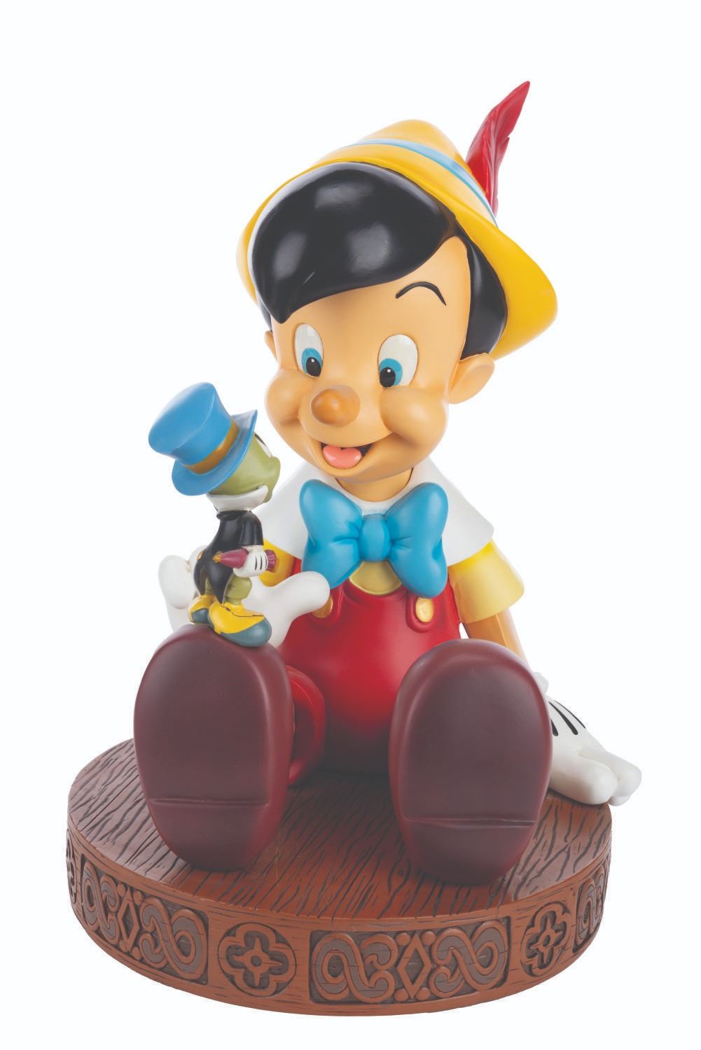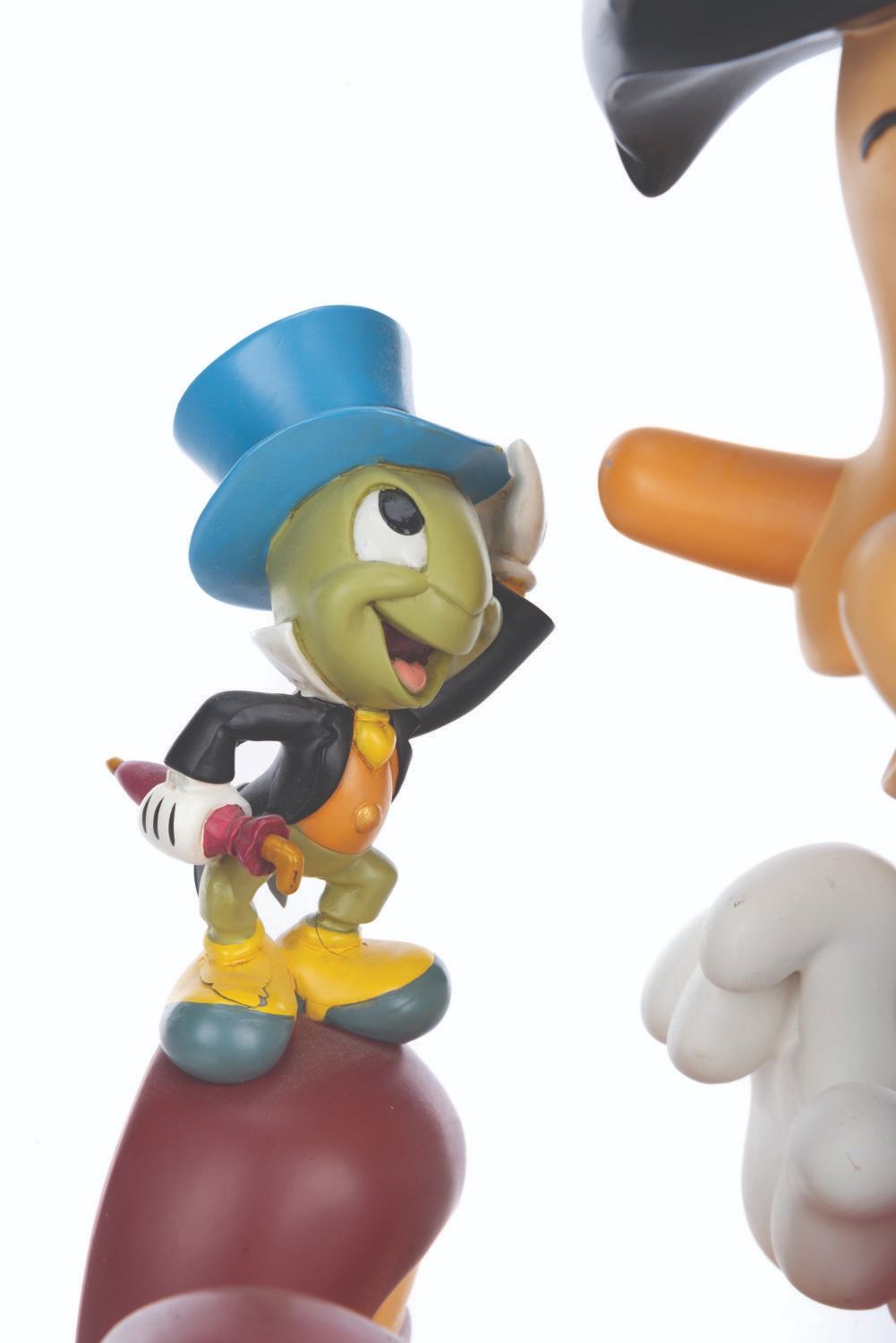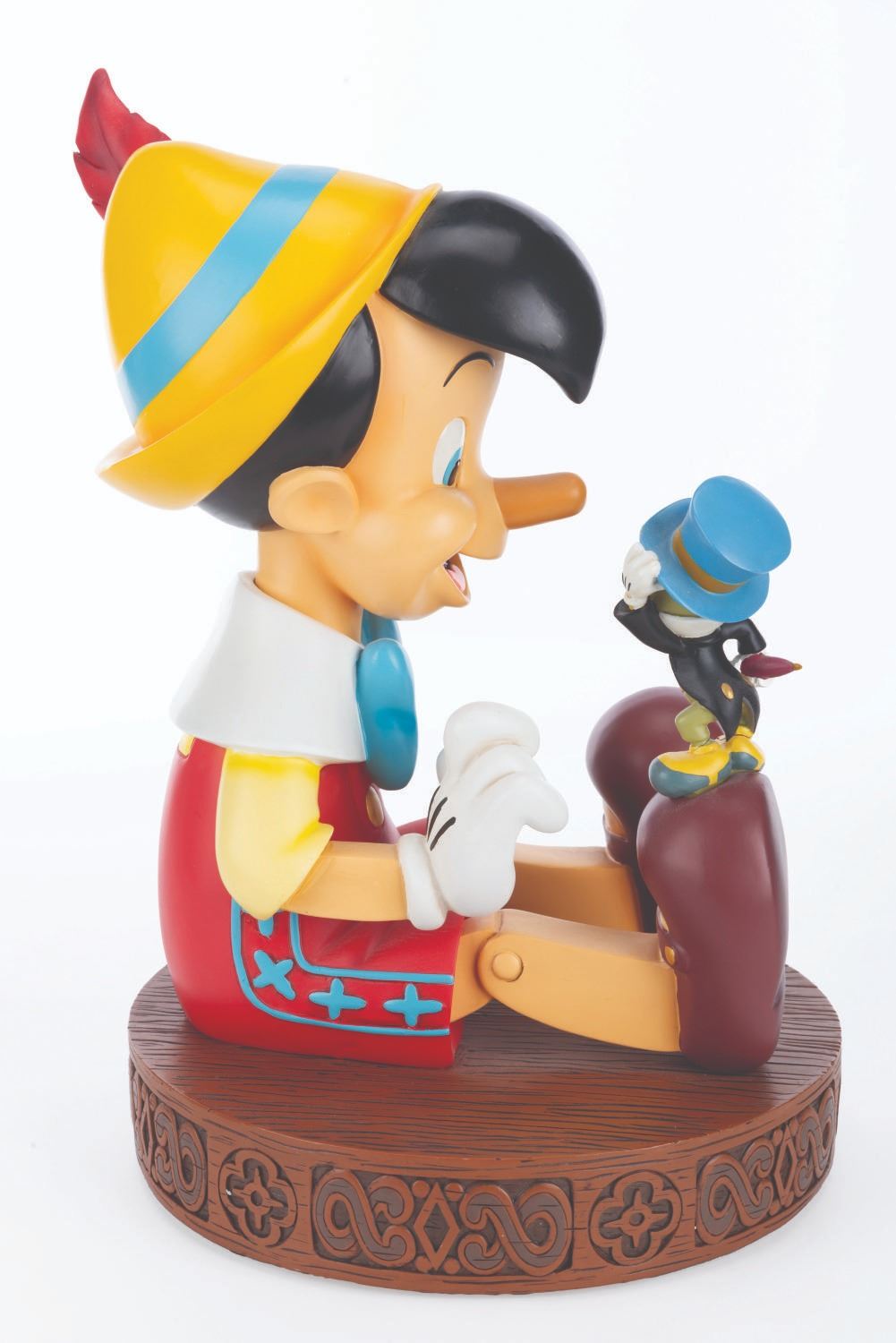 (Disneyland, 2013) A Pinocchio and Jiminy Cricket medium Fig designed by Costa Alavezos to commemorate the 30th anniversary of the Pinocchio’s Daring Journey attraction. Measuring 8.25” in diameter and 12” tall, the cast resin piece is in very good condition with slight scratches and scuffs, and a crack in the top of Jiminy’s right foot.