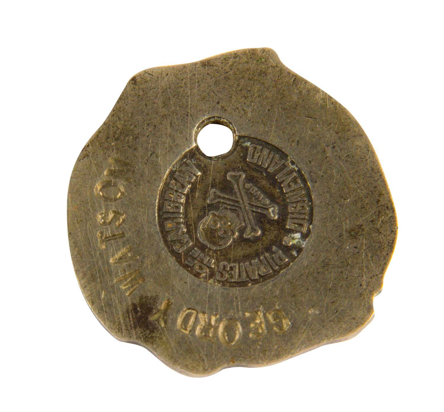 (Disneyland, 1970s-90s) A souvenir doubloon based on the treasure seen throughout the Pirates of the Caribbean attraction. Measuring 1.5" in diameter, the doubloon is in very good used condition, appearing worn as originally sold.