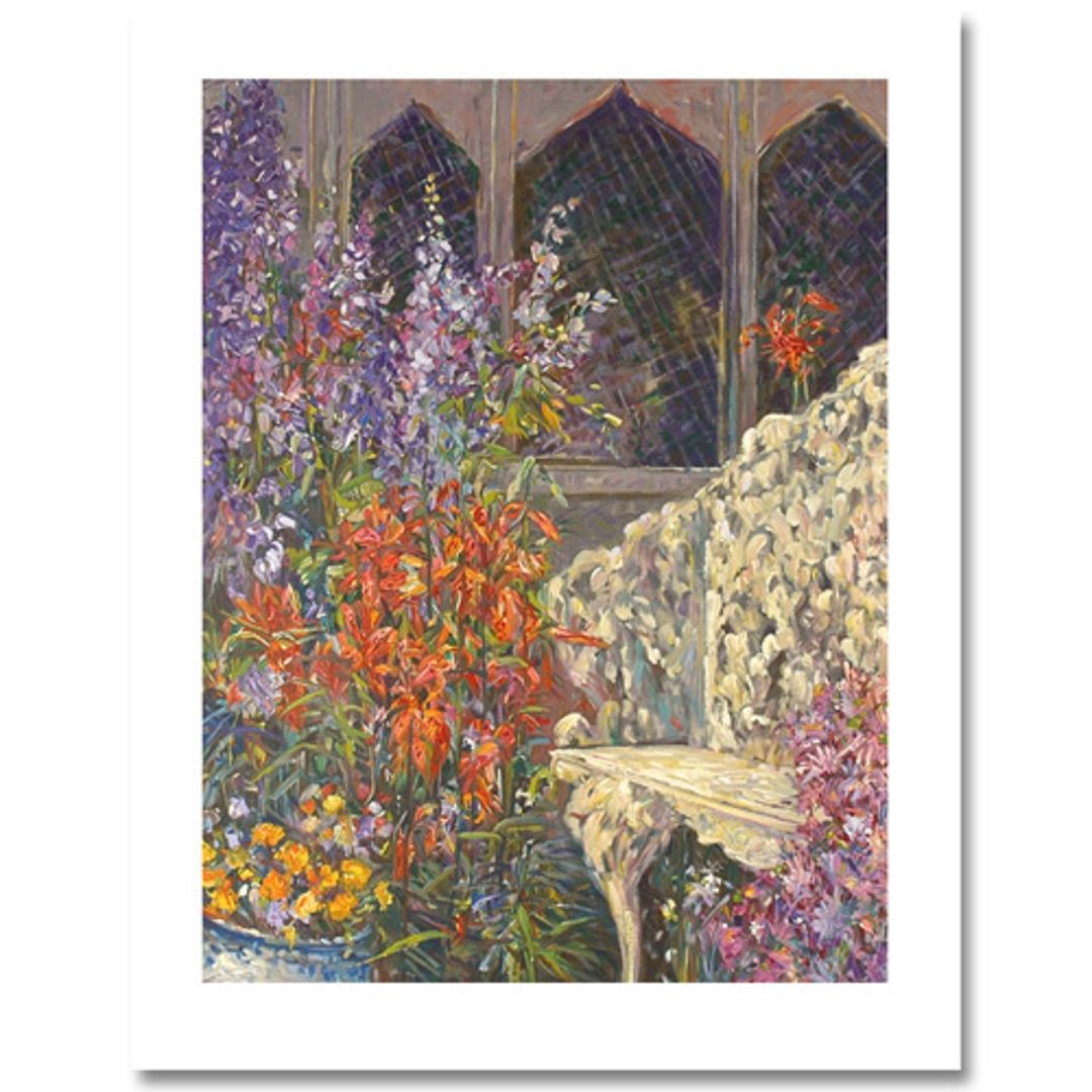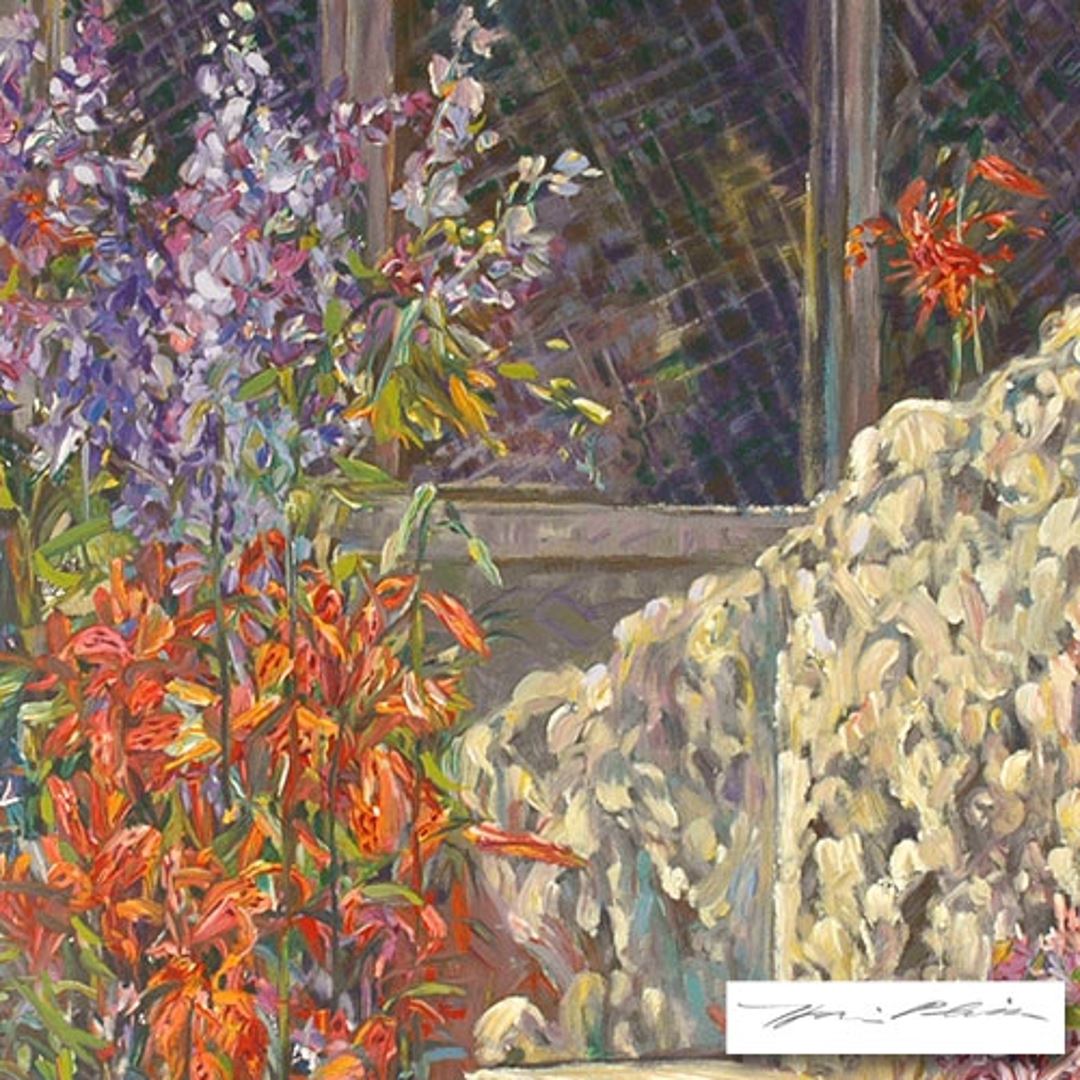 A Place in the Garden is a Limited Edition Serigraph on paper from a SOLD OUT Edition by Henry Plisson. Extra large print, numbered and Hand Signed with Publisher's Certificate of Authenticity! Measures appx. 30 x 39 (border); 25 x 33.5 (image).