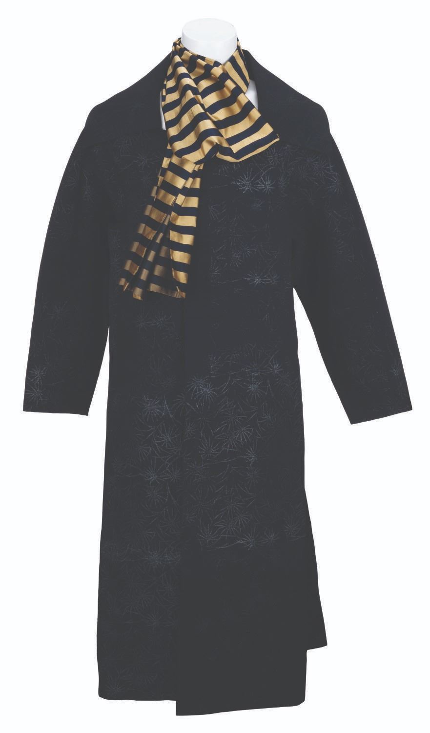 (20th Century Fox, 2001) An overcoat and scarf worn by a gorilla in Tim Burton's "Planet of the Apes." Measuring 59” in length, the neoprene coat and scarf are in fine condition.