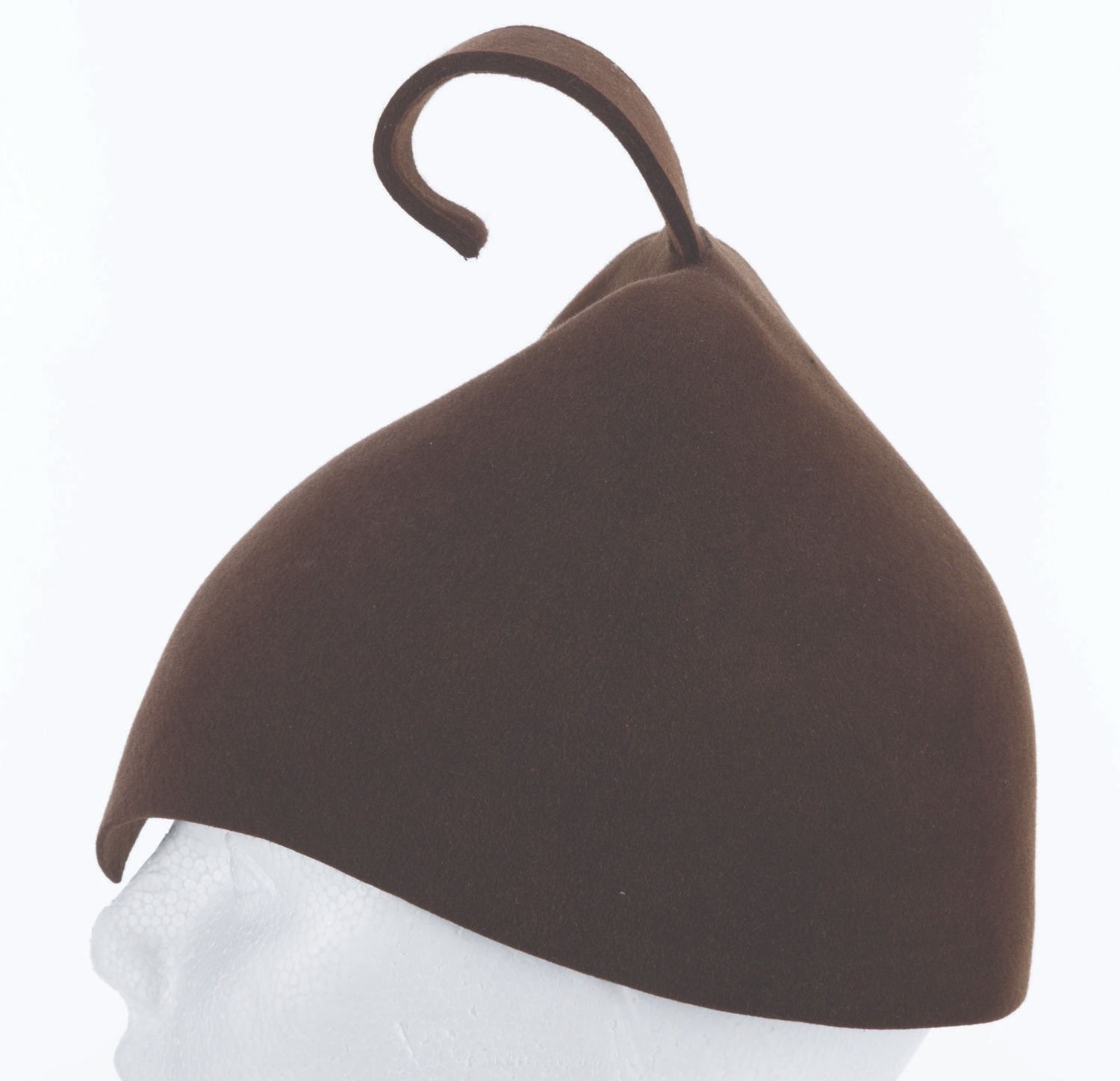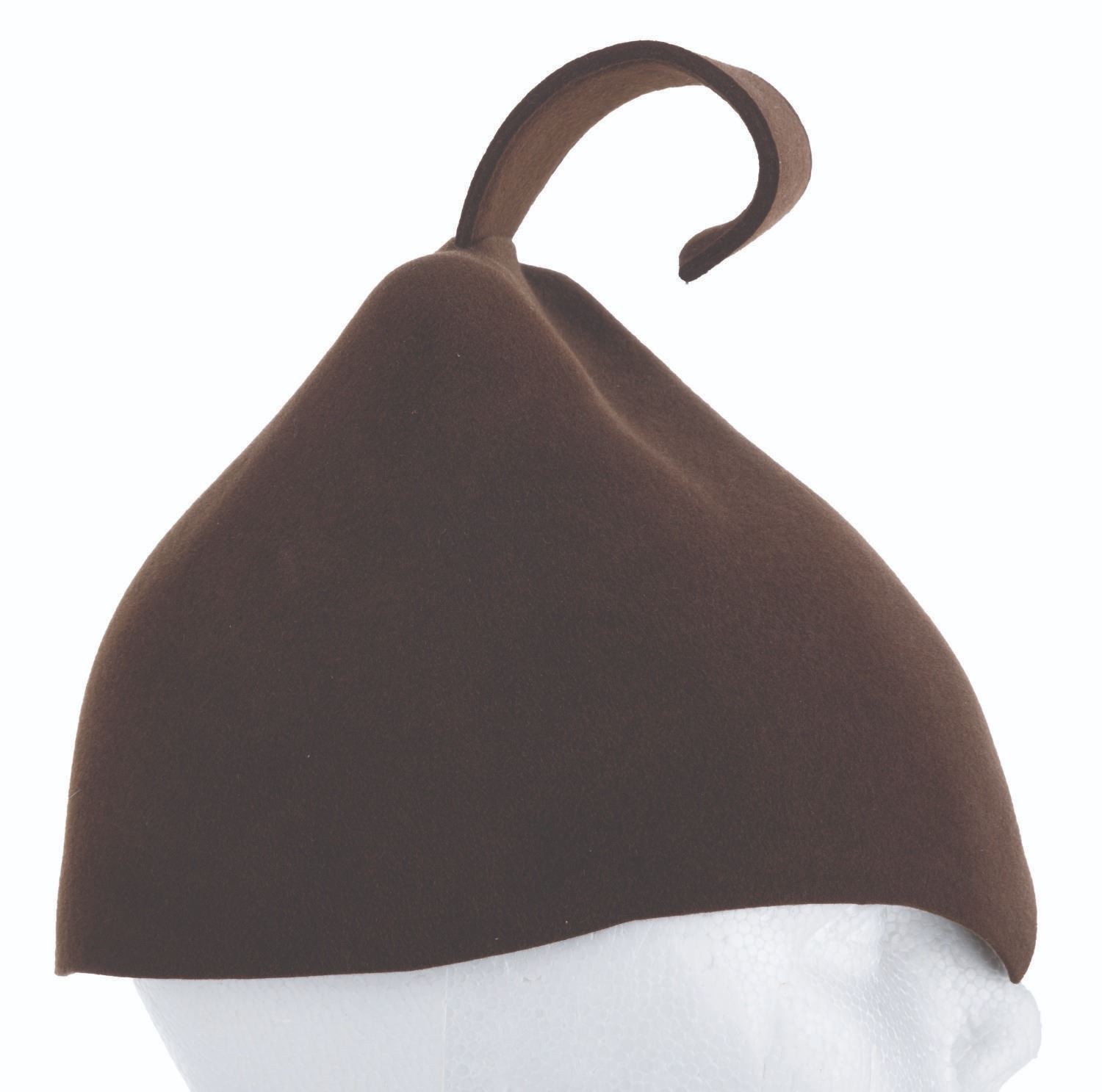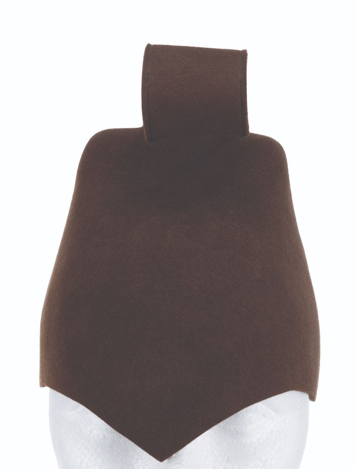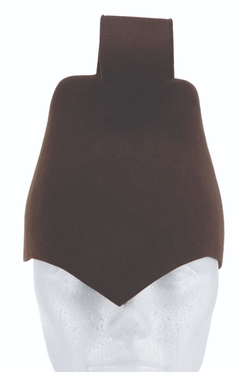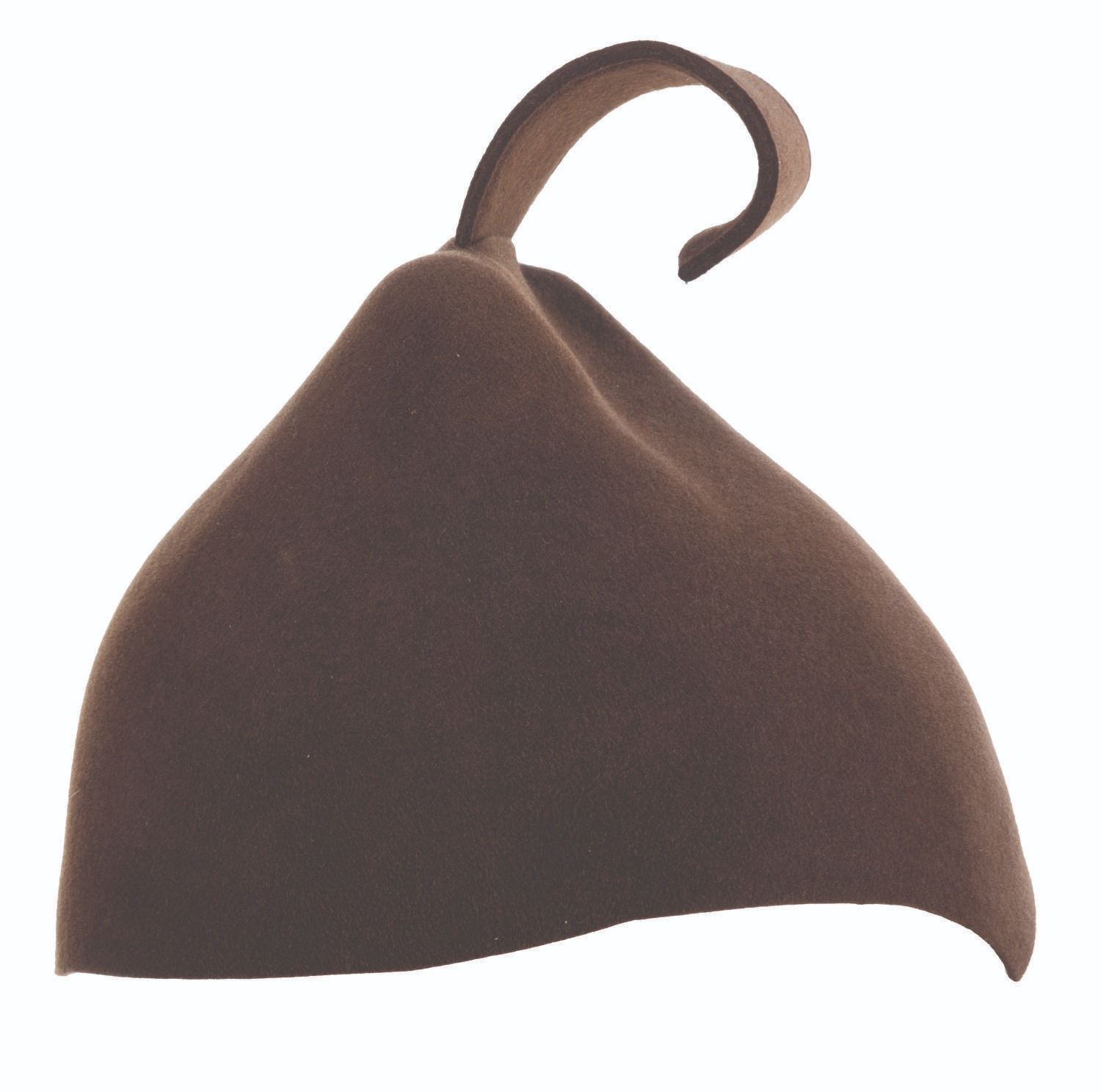 (20th Century Fox, 2001) A brown civilian ape hat, part of a costume from Tim Burton's "Planet of the Apes" reboot in 2001. The felted wool cap has three hair clips inside to affix in place, and a curled strap on top for decoration. Measuring 7" in diameter x 8.5" high, the costume piece is in very good production-used condition.