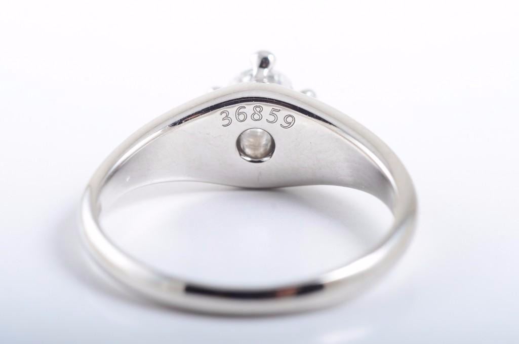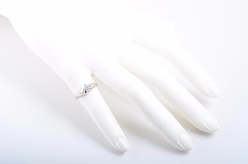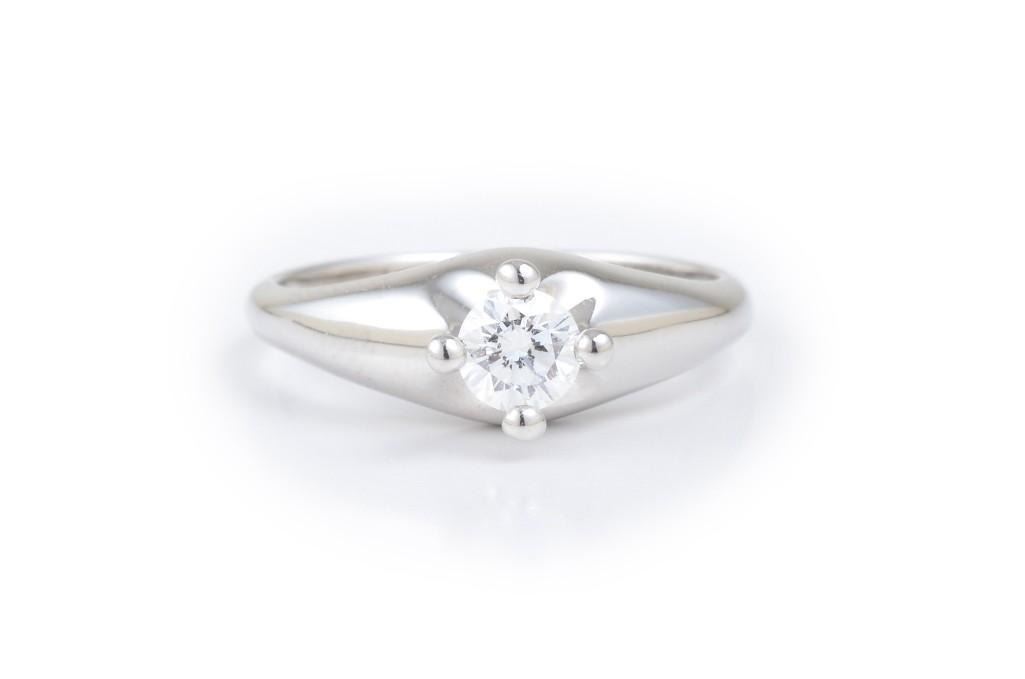 Set with a solitaire round brilliant-cut diamond, weighing approximately 0.30 carat; signed Bvlgari 36859; ring size 5; weight 5.6g.