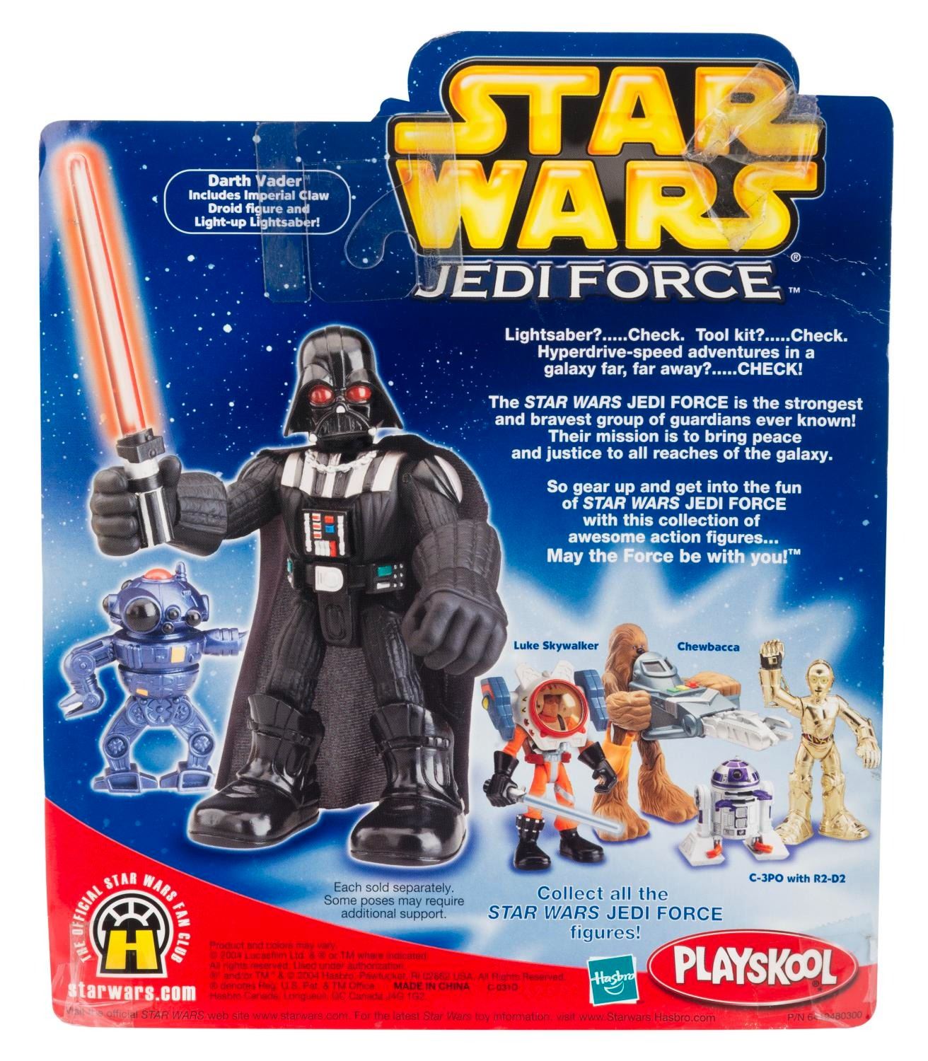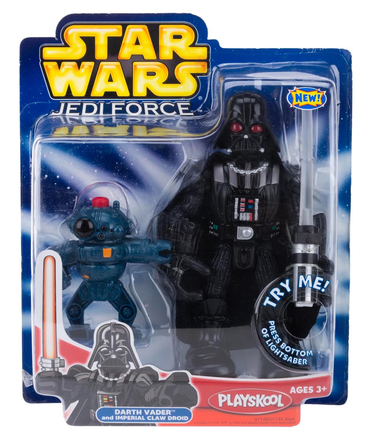 (Hasbro, 2004) A Star Wars Jedi Force action figure of Darth Vader with an Imperial Claw Droid. Vader’s lightsaber lights red when pressed. Standing 7” tall with a 3.5” droid, the figure is in fine condition, sealed in the original good condition card.