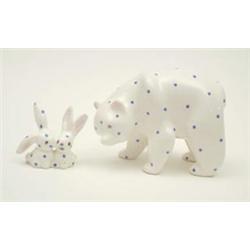 A Plichta model of a bear cub, 5ins and another of a pair of rabbits £100-150