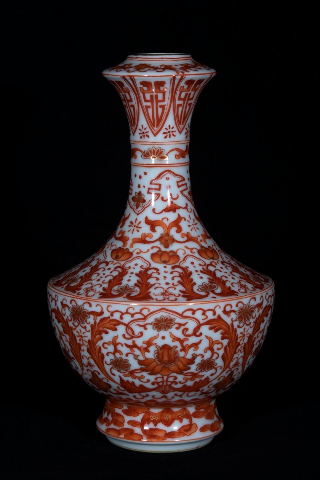 A Porcelain Alum Red With Gold Apinting Garlic Vase