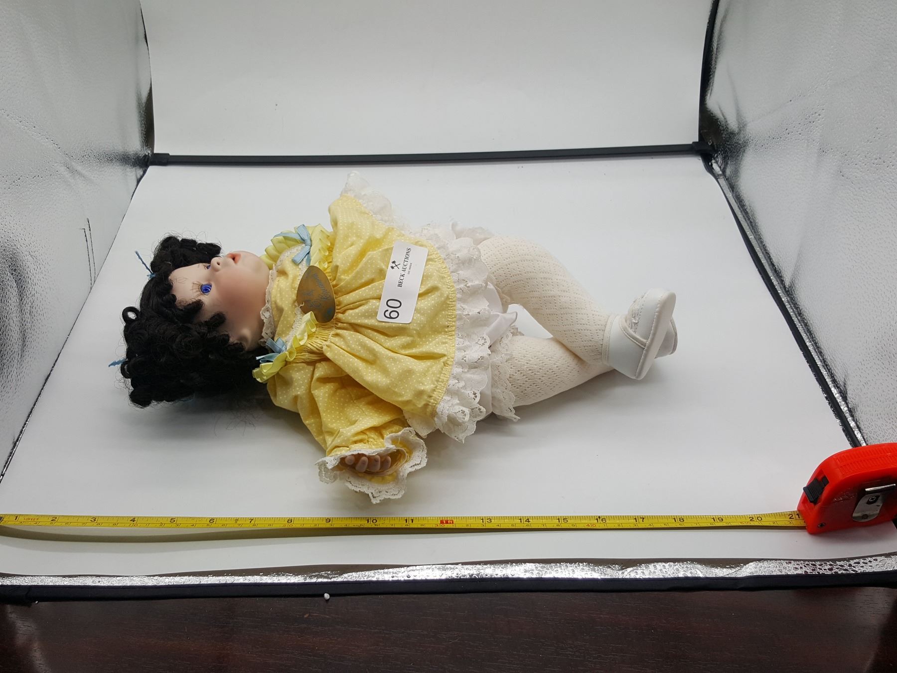 A Porcelain Baby Doll in a Yellow Dress.
