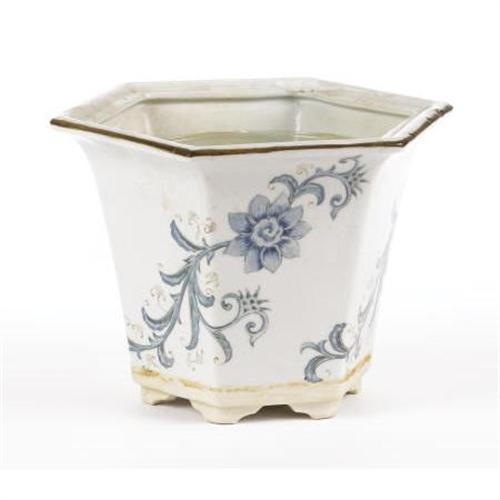<B>A Porcelain Vase or Planter<BR></B></I>Blue flowers and foliage on white, hexagonal with flared rim<BR>6 x 8-1/2 inches (15.2 x 19.1 cm)<BR> <BR><BR><b>Shipping:</b> Requires 3rd Party Shipping (<a target="_blank" href="http://www.heritageauctions.com/common/shipping.php">view shipping information</a>)